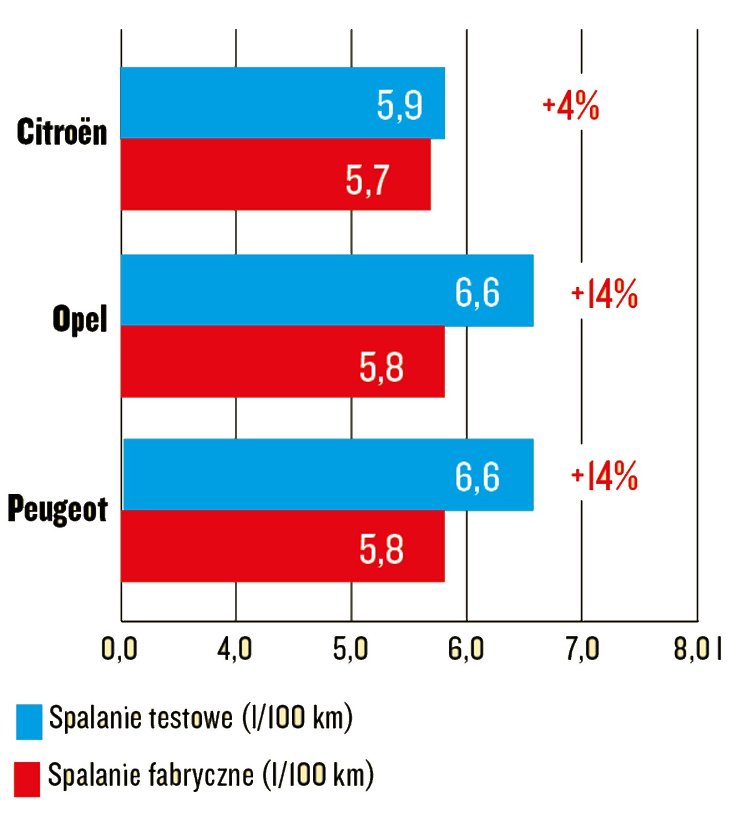 Spalanie testowe kontra katalogowe zużycie paliwa (różnica nie jest oceniana)