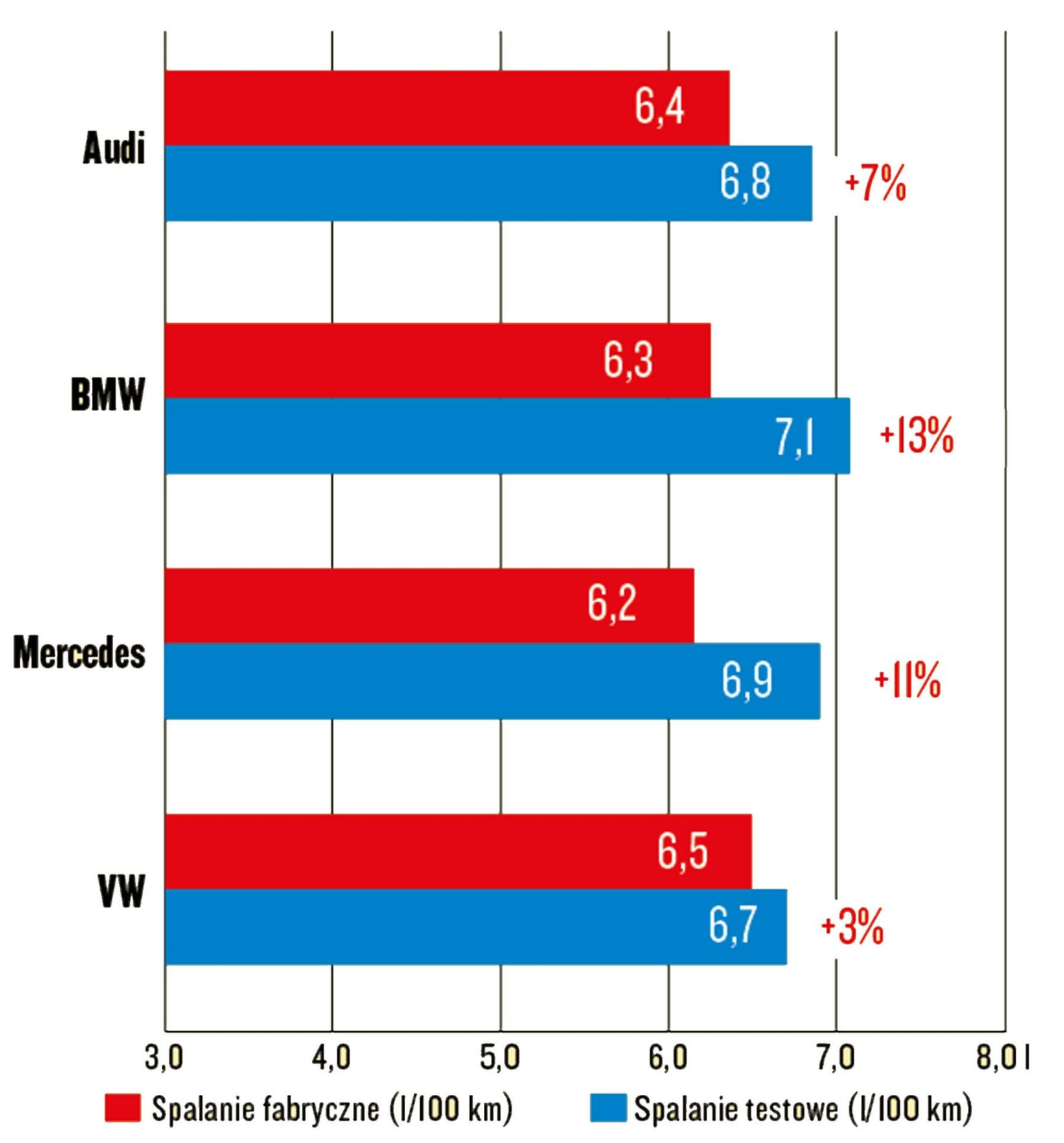 Spalanie testowe kontra katalogowe zużycie paliwa (różnica nie jest oceniana)