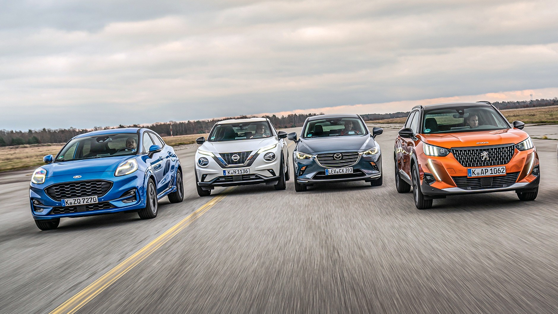 Ford Puma 1.0 EcoBoost, Peugeot 2008 1.2 PureTech, Mazda CX-3 2.0 Skyactiv-G, Nissan Juke 1.0 DIG-T - punkty i klasyfikacja