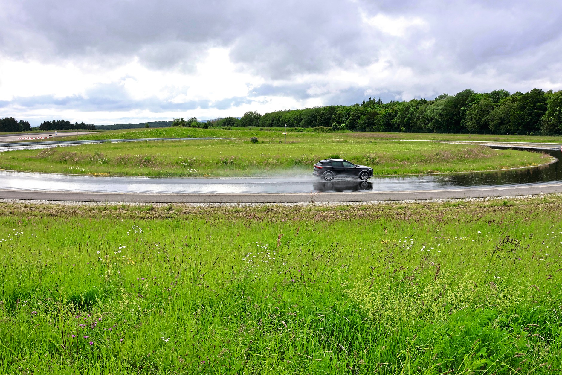Próby na mokrej nawierzchni: prowadzenie i jazda po okręgu