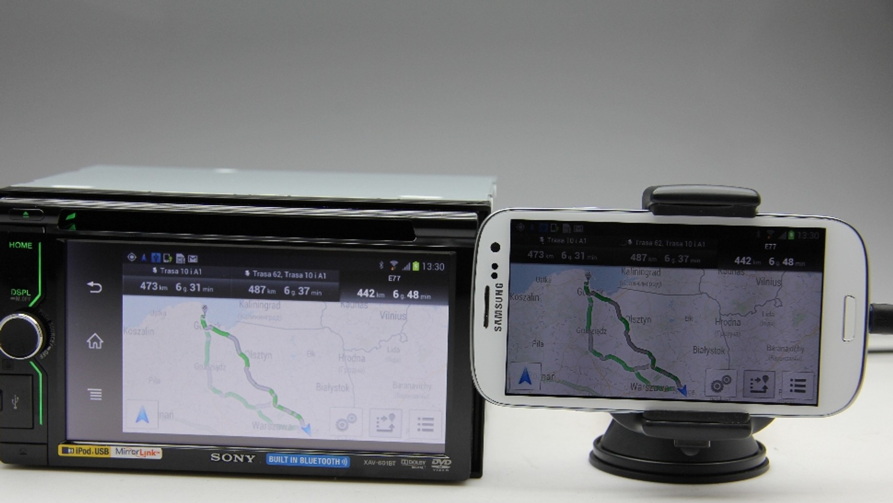 Testowaliśmy wersję Drive Link1.1.012. Oprogramowanie w Sony XAV-601BT to odmiana 1.09.001. Już po zakończeniu testu pojawiła się aktualizacja 1.12.001 – sprawdzimy ją po ponownym udostępnieniu telefonu przez Samsunga. Co ciekawe Sony twierdzi, że w nowej aktualizacji dodano zgodność z Galaxy SIII. Niemniej testowana wersja nieźle radziła sobie ze smartfonem.