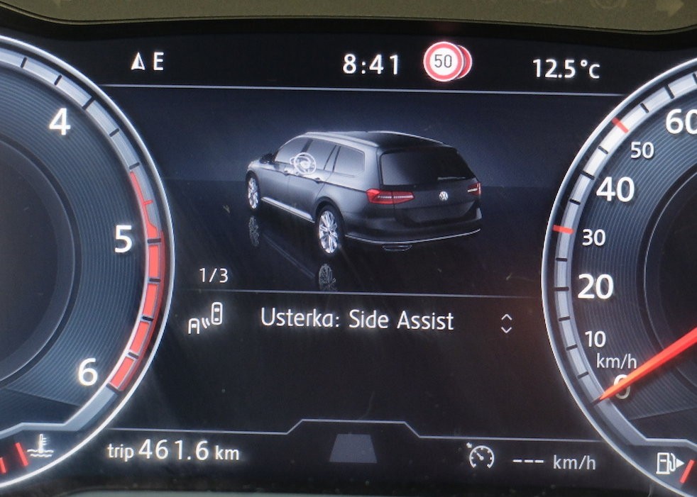 Niestety, testowany egzemplarz nie tylko z powodu superkomfortowego zawieszenia ten Passat kojarzył mi się ze starym „francuzem”. Otóż przyjemność z jazdy raz na jakiś czas psuły mi komunikaty o licznych wyimaginowanych usterkach. „Ping” i komunikat: „Sprawdź ciśnienie w oponach”. Sprawdzam, jest właściwe (po chwili auto samo też dochodzi do tego wniosku). „Ping”, „Usterka: Side Assist”, „Ping”, „Rozpoznawanie znaków niedostępne” – w dodatku wszystko samo wracało później do porządku. Niemieckiemu autu takie marudzenie nie przystoi.