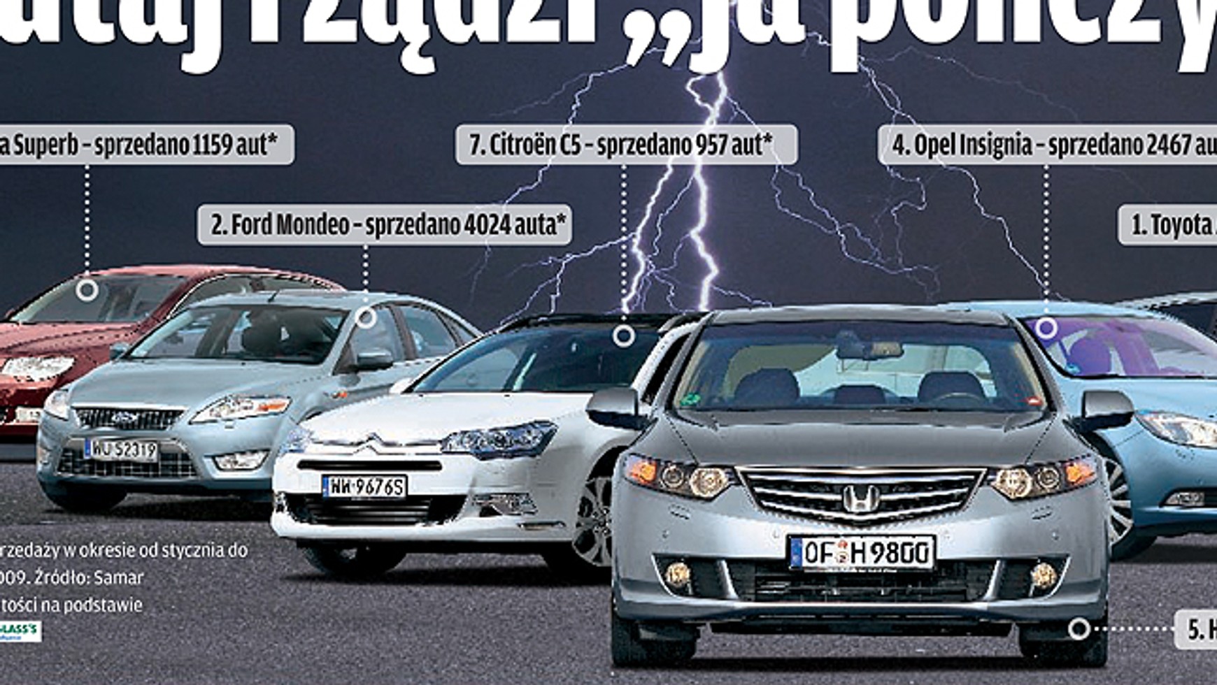 Według danych Instytutu Samar pierwszą siódemkę rankingu sprzedaży w tym segmencie stanowią: Toyota Avensis, Ford Mondeo, Volkswagen Passat, Opel Insignia, Honda Accord, Skoda Superb oraz Citroën C5. Oczywiście, nam nie wystarczył ten ranking, więc przeprowadziliśmy dodatkowo wywiady ze sprzedawcami w kilku warszawskich salonach. Dzięki temu zorientowaliśmy się, jakie wersje nadwoziowe, silnikowe oraz wyposażeniowe są najczęściej wybierane.