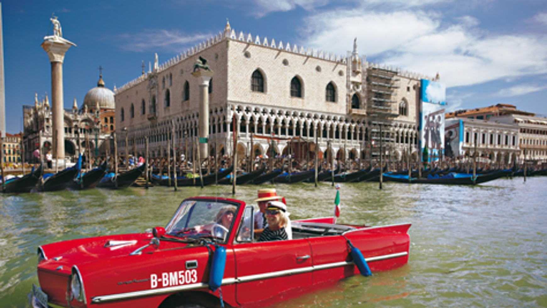 Wczesnym rankiem kanały Wenecji należą do miejscowych – trzeba dowieźć towar do sklepów, gazety do kiosków, dzieci do szkoły itd. A tu pojawia się czerwony Amphicar! Ludzie szybko przestają gadać przez komórki, by zrobić nam zdjęcie. Wyluzowani gondolierzy zdejmują okulary przeciwsłoneczne, piekarze i robotnicy machają przyjaźnie, a weneckie łodzie ustawiają się tak, by ich pasażerowie mogli zrobić jak najlepsze zdjęcie. Po chwili czujemy, jakby za chwilę miała się rozpętać potężna burza – z każdej strony atakują nas flesze aparatów fotograficznych. Na Canale Grande panuje „stan wyjątkowy”. Idziemy o zakład, że gdyby przepływała obok Angelina Jolie, nikt by tego nawet nie zauważył.