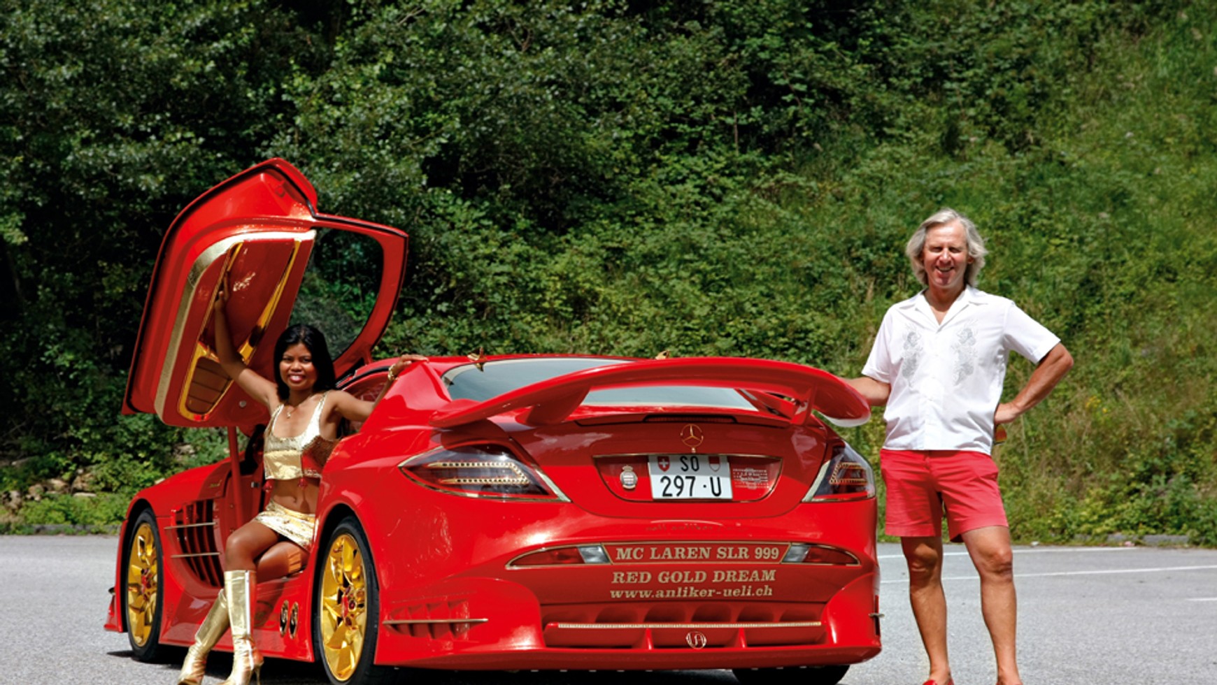 Nie przeszkadza mu również to, że jego „jeżdżące konto bankowe” nie znajduje wielu zwolenników nawet wśród wyjątkowo tolerancyjnych fanów sceny tuningowej. Niektórym przód tego SLR-a kojarzy się z syberyjską lokomotywą, do której doczepiono pług śnieżny w rozmiarze XXL, a tylny spoiler przypomina kształtem wiraż 4-pasmowego zabawkowego toru wyścigowego. Inne komentarze z internetowego blogu: jeden z użytkowników naśmiewa się, że auto wygląda jak karuzela na kołach, ktoś z kolei skarży się, iż odkąd zobaczył tego SLR-a, cierpi na chroniczny reumatyzm źrenic.Ueli tymczasem zagłębia się w fotelu i odsyła o swojej witryny (www.anliker-ueli.ch), na której zdradza swoją filozofię.