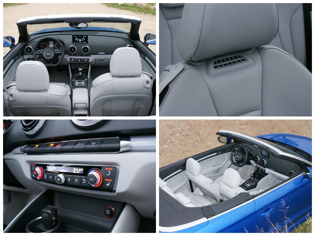 Testowane Audi A3 Cabriolet to, jak wspomniałem, bardzo przemyślane auto. Jak na rasowe kabrio przystało, zapewnia kierowcy i pasażerowi odpowiednią ochronę przed wiatrem, przy otwartym dachu. Składany wiatrołap, przyznam, nie wygląda zbyt efektownie i rozłożony blokuje dostęp do tylnych foteli, ale działa fenomenalnie. No i można go złożyć i schować do bagażnika, gdzie zajmuje niewiele miejsca.