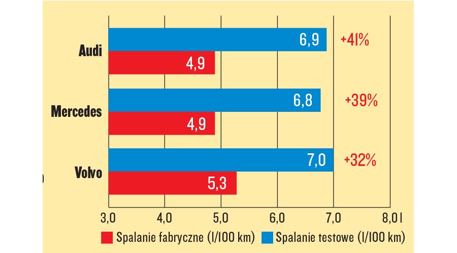 Audi A6 40 TDI kontra Mercedes E 220 d i Volvo V90 D4 - test spalania