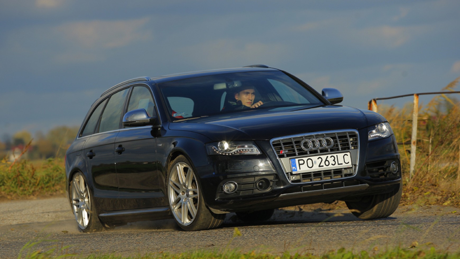 Audi S4 Avant prowadzi się tak stabilnie, że poziom bezpieczeństwa pozostaje proporcjonalny do rozsądku kierującego. W cenę wliczono prestiż emblematu S4.