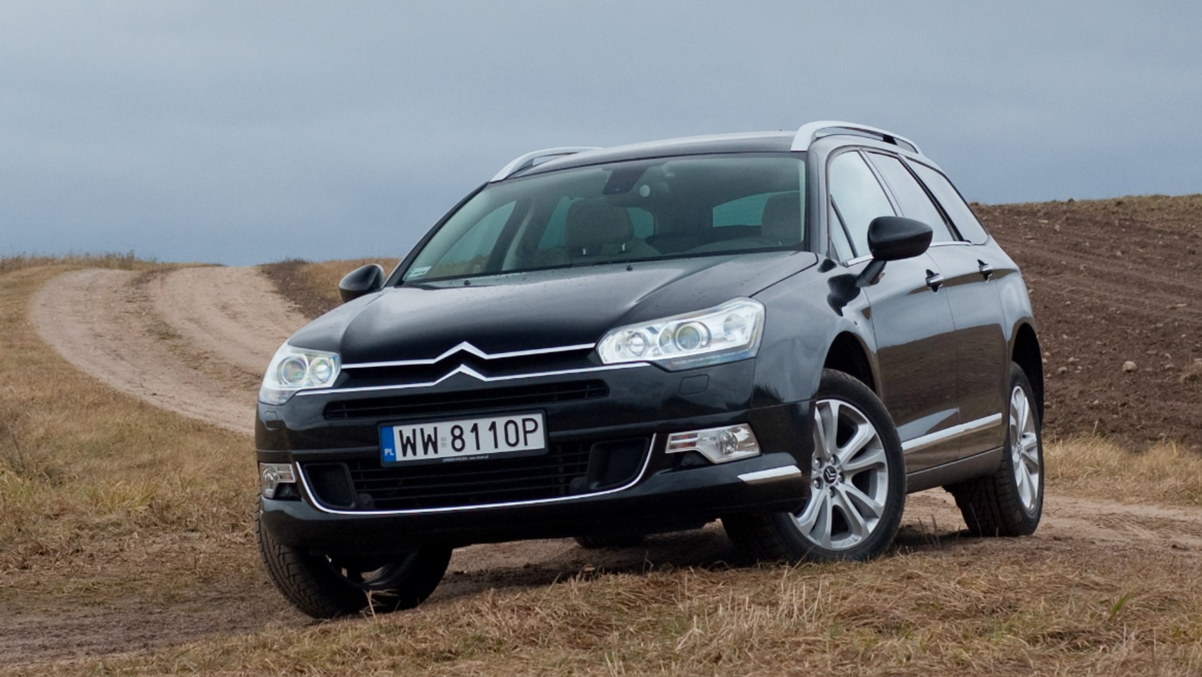 Duży wlot powietrza w przednim zderzaku i wysoko umieszczone reflektory połączone z chromowanymi elementami grilla nadają autu poważny wygląd. Profil Citroena ma delikatną stylistykę z jednym wyraźnym przetłoczeniem, które w tylnej części nadwozia przechodzi w reflektor. Lekko wybrzuszone progi są zaakcentowane chromowaną, ozdobną listwą. Dodatkowo elegancji przydają Citroenowi chromy przy dolnej linii szyb, srebrne klamki, relingi dachowe oraz przyciemniane tylne szyby. Tył C5 Tourer jest prosty i nie przykuwa wzroku niczym specjalnym, jedynym elementem ozdobnym jest spoiler.Wnętrze testowanego egzemplarza zostało bogato wyposażone. Znaleźliśmy w nim jeden minus – to bardzo duża liczba przycisków zarówno na kierownicy (20), jak i desce rozdzielczej. W ich gąszczu można się pogubić, szczególnie gdy Citroena C5 prowadzimy po raz pierwszy. Zegary są przyozdobione srebrnymi obwolutami, nie sprawiają one problemów z odczytem wybranych parametrów.Przydatną funkcją, znaną z Saabów jest tzw. Black Panel. Pozwala ona na wyłączenie podświetlenia wszystkich wskaźników poza prędkościomierzem.