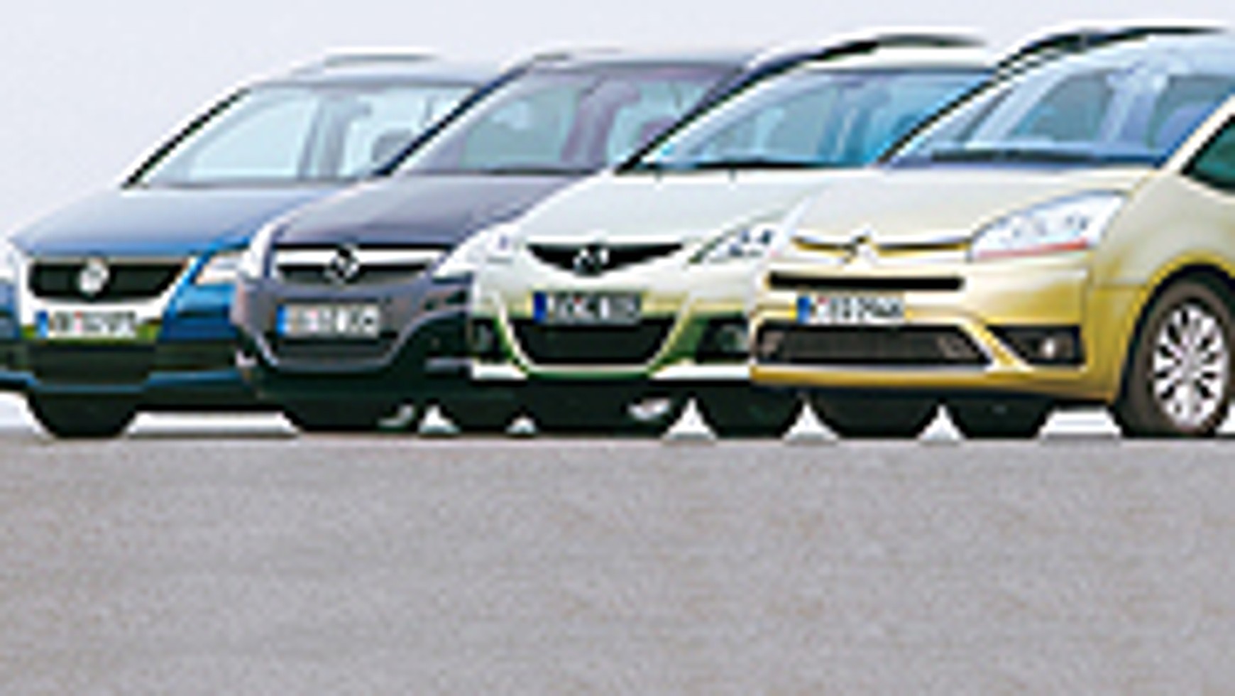 Żaden z porównywanych samochodów nie ma tak cichej jednostki napędowej. C4 ma zawieszenie, które próbuje zniwelować wyboje na drodze. I udaje się to bezbłędnie. Jednak szybkie pokonywanie zakrętów nie jest jego żywiołem. W takiej sytuacji Picasso pochyla się dość mocno. Jednak dzięki elektronicznym pomocnikom pozostaje bezpieczne. Testowane samochody mają skuteczne układy hamulcowe. Przy zimnych tarczach najszybciej zatrzymuje się VW, a Mazda jest tylko nieznacznie gorsza. Większy dystans przed zatrzymaniem muszą pokonać Opel i Citroën, który potrzebuje prawie metr więcej od Tourana.