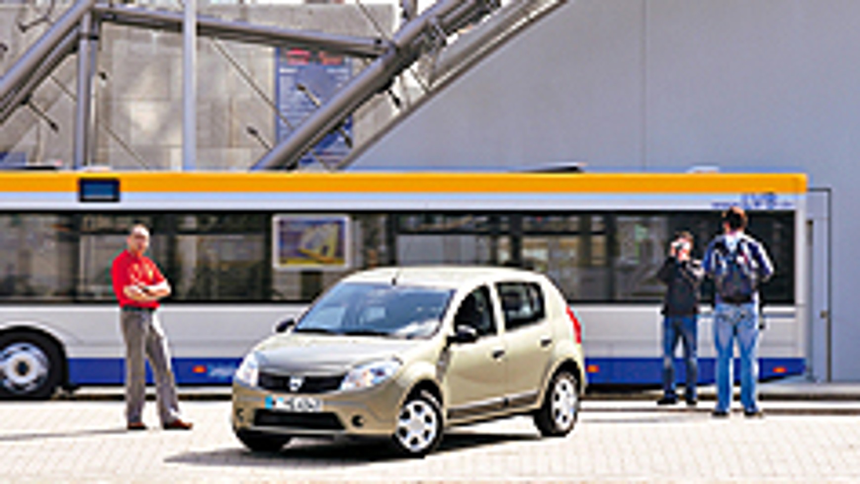 Choć wymiarami nadwozia, a zwłaszcza rozstawem osi (2,59 m), bliżej mu do kompaktów, to zamieszanie nowy model Dacii wywoła raczej w segmencie B. I to nie tylko atrakcyjna cena będzie jego głównym atutem w walce o klienta.Logan w dwóch wersjach nadwoziowych, tj. sedan i kombi, oswoił już klientów z marką i sprawił, że czasy, kiedy Dacie kojarzono z awaryjnymi i kiepsko wykonanymi samochodami, odeszły w niepamięć. Pięciodrzwiowy hatchback Sandero udowadnia ponadto, że mogą to być auta ładne i naprawdę funkcjonalne.Auto powstało na tej samej płycie podłogowej co Logan, ale nie jest to tylko zmodyfikowana wersja modelu. Zmieniona stylizacja przedniego pasa i zgrabny tył sprawiają, że Sandero ma bardziej dynamiczny styl, który powinien spodobać się młodszym klientom. Szerokie listwy ochronne w dolnej części drzwi to nie tylko dodatek estetyczny, lecz także praktyczny – chroni przed potencjalnymi otarciami. Szerokie słupki tylne ograniczają natomiast widoczność do tyłu podczas manewrowania.Szeroko otwierane drzwi (tylne pod kątem 67 stopni) ułatwiają zajmowanie miejsca w przestronnym wnętrzu. Zarówno z przodu, jak i na tylnych siedzeniach pasażerowie mają wystarczającą ilość miejsca na nogi i nad głowami. Sporą pojemność oferuje także bagażnik. 320 l w tej klasie to wynik bardzo dobry. Jeszcze lepiej przestrzeń ładunkowa wygląda po rozłożeniu tylnych siedzeń. Podłoga nie jest co prawda idealnie płaska, ale do dyspozycji mamy w sumie 1200 l.Jakość materiałów wykończeniowych nie jest zachwycającą. Plastiki są twarde. Ich spasowanie nie budzi jednak większych zastrzeżeń. Monotonna wydawać się może szaro--czarna kolorystyka kokpitu i tapicerki. Również układ jezdny modelu przejęto bez zmian z sedana. Zawieszenie ma dość miękką charakterystykę, dzięki czemu Sandero oferuje dobry komfort jazdy. Problemu nie stanowi też szybkie pokonywanie zakrętów, choć tu pojawiają się tendencje do nadsterowności. Pewną nerwowość auto wykazuje na nierównościach.W topowej wersji silnikowej, benzynowej 1.6 o mocy 92 KM, Dacia popisuje sięprzyzwoitą dynamiką jazdy. Jako umiarkowane należy określić zużycie paliwa. W ofercie znajdzie się jeszcze silnik 1.4/75 KM oraz dwa diesle 1.5 dCi o mocach 70 i 85 KM. Specyfikację i ceny modelu Dacia przedstawi w lipcu.