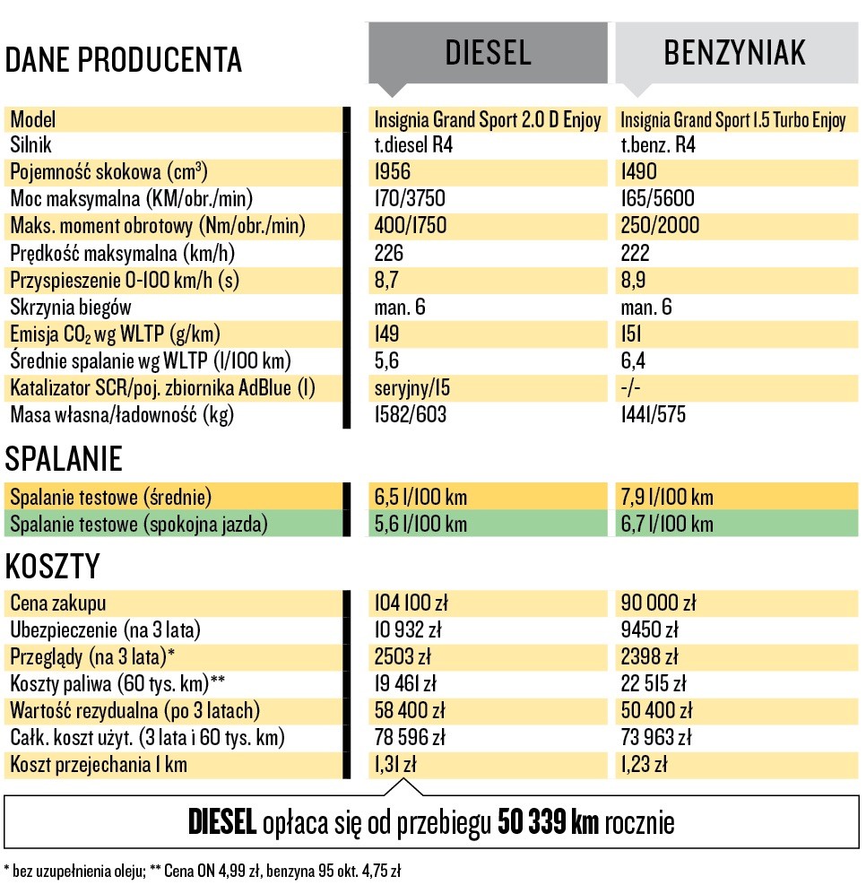 Policzmy zatem wszystkie zalety i wady obu limuzyn. Każde przejechane 100 km kosztuje w wersji benzynowej „w paliwie” o 5,09 zł więcej. Jeśli jednak weźmiemy pod uwagę wszystkie koszty, okaże się, że 100-kilometrowa podróż to w dieslu wydatek 131 zł, a w benzyniaku – 123 zł. Odmiana 1.5 turbo jest o ponad 14 100 zł tańsza w zakupie i mniej traci na wartości przy odsprzedaży. Diesla warto wybrać dopiero wtedy, gdy przejeżdża się niewyobrażalne 50 339 km rocznie. W przeciwnym razie jest to nieopłacalne.