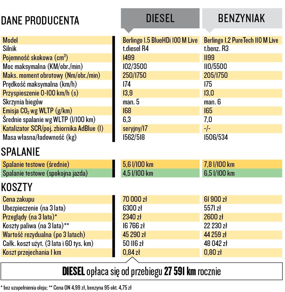 Skoro znaczna większość klientów wybiera diesla, to znaczy, że Berlingo są kupowane po to, by „robić” duże przebiegi. Prywatnie jednak trudno pokonywać aż 27 591 km rocznie, żeby diesel się opłacał. Do użytku rodzinnego lepiej nadaje się cichszy i przyjemniejszy PureTech, który jest też tańszy w zakupie i mniej traci na wartości przy odsprzedaży.