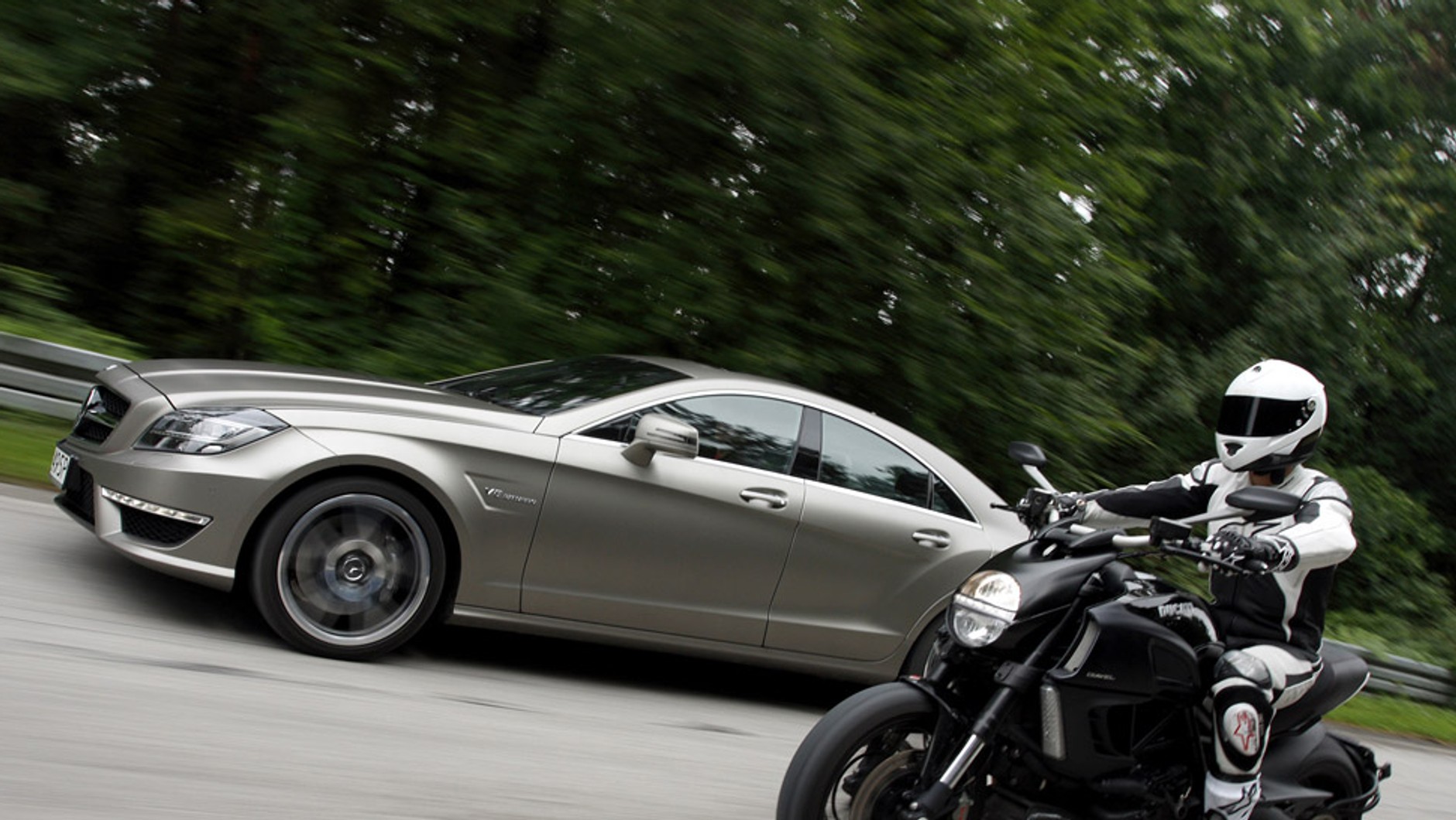 Ducati Diavel nie ma ceramicznych hamulców, a i tak pod względem zaawansowania technologicznego nie ustępuje AMG. Choć jeździ tylko na 2 kołach, potrafi dostarczyć motocykliście więcej emocji niż CLS. Wprawny kierowca od 0 do 100 km/h rozpędzi się w 2,8 s. To wynik godny sportowej maszyny, a przecież Ducati zalicza Diavela do grupy cruiserów.