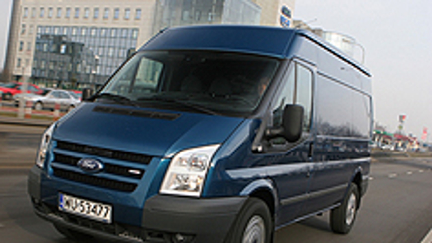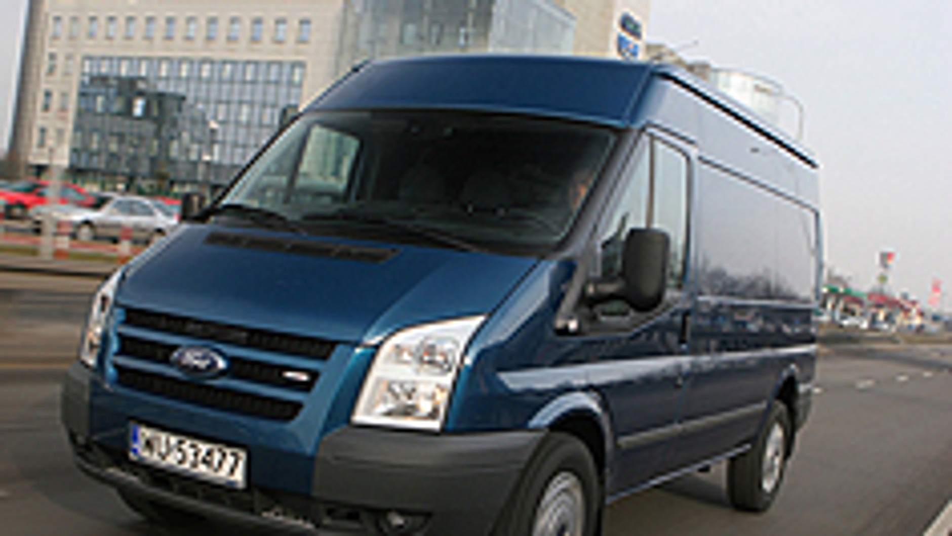 Nie zabrakło także podkładki pod faktury. Jedynym mankamentem testowanego Transita jest brak regulacji kierownicy. Podobać może się za to widoczność w dużych lusterkach zewnętrznych. Sytuację za autem można śledzić też dzięki środkowemu lusterku, bo tylne drzwi są przeszklone (opcja bezpłatna). Dzięki mocnemu silnikowi auto jest dynamiczne i bez trudu radzi sobie z transportem ciężkich ładunków.Poza tym pod większym obciążeniem tylna, napędzana oś jest mocniej dociążona, a wtedy pojazd pewniej się prowadzi. Zaletą przekazywania napędu na tył jest również łatwość holowania przyczep. Załadunek umożliwiają odsuwane drzwi z prawej strony i dwuskrzydłowe z tyłu. Towar można przymocować dzięki seryjnym uchwytom na podłodze. Klasyczny napęd powoduje, że podwozie zostało poprowadzone wysoko, a to utrudnia załadunek ciężkich przedmiotów.