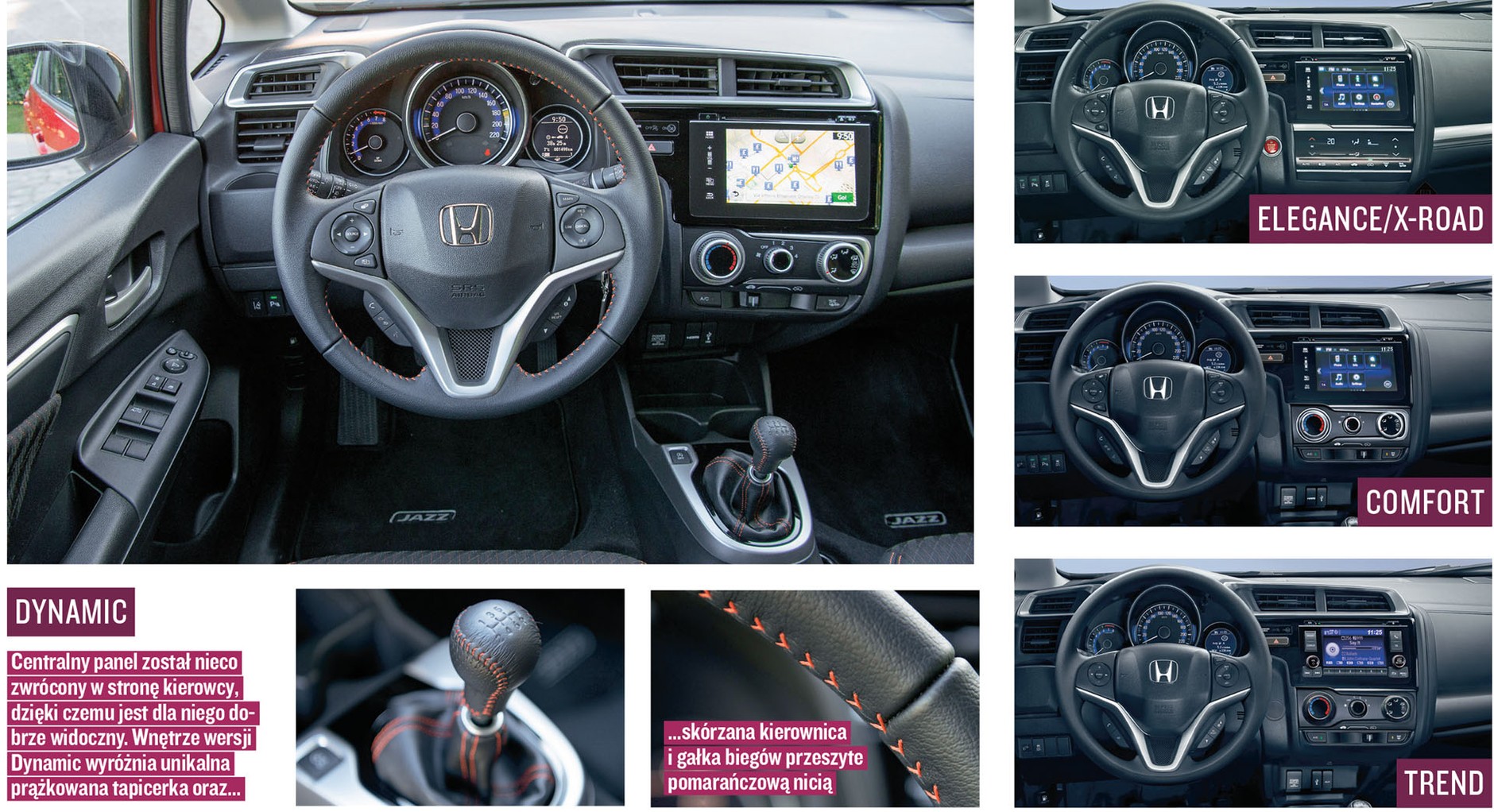 Pojawienie się nowego silnika i dodatkowych wersji wyposażeniowych znacznie uatrakcyjniło ofertę Jazza. Tym niezwykle funkcjonalnym autem miejskim mogą zainteresować się teraz osoby lubiące crossovery (X-Road) oraz kierowcy o sportowym usposobieniu (Dynamic). Zwłaszcza tych ostatnich ucieszy nowa jednostka 1.5 o mocy 130 KM, która osiąga „setkę” w niespełna 9 s. I właśnie tę wersję – choć kosztowną – polecamy, gdyż wolnossący, wysokoobrotowy silnik jest od lat kwintesencją Hondy.