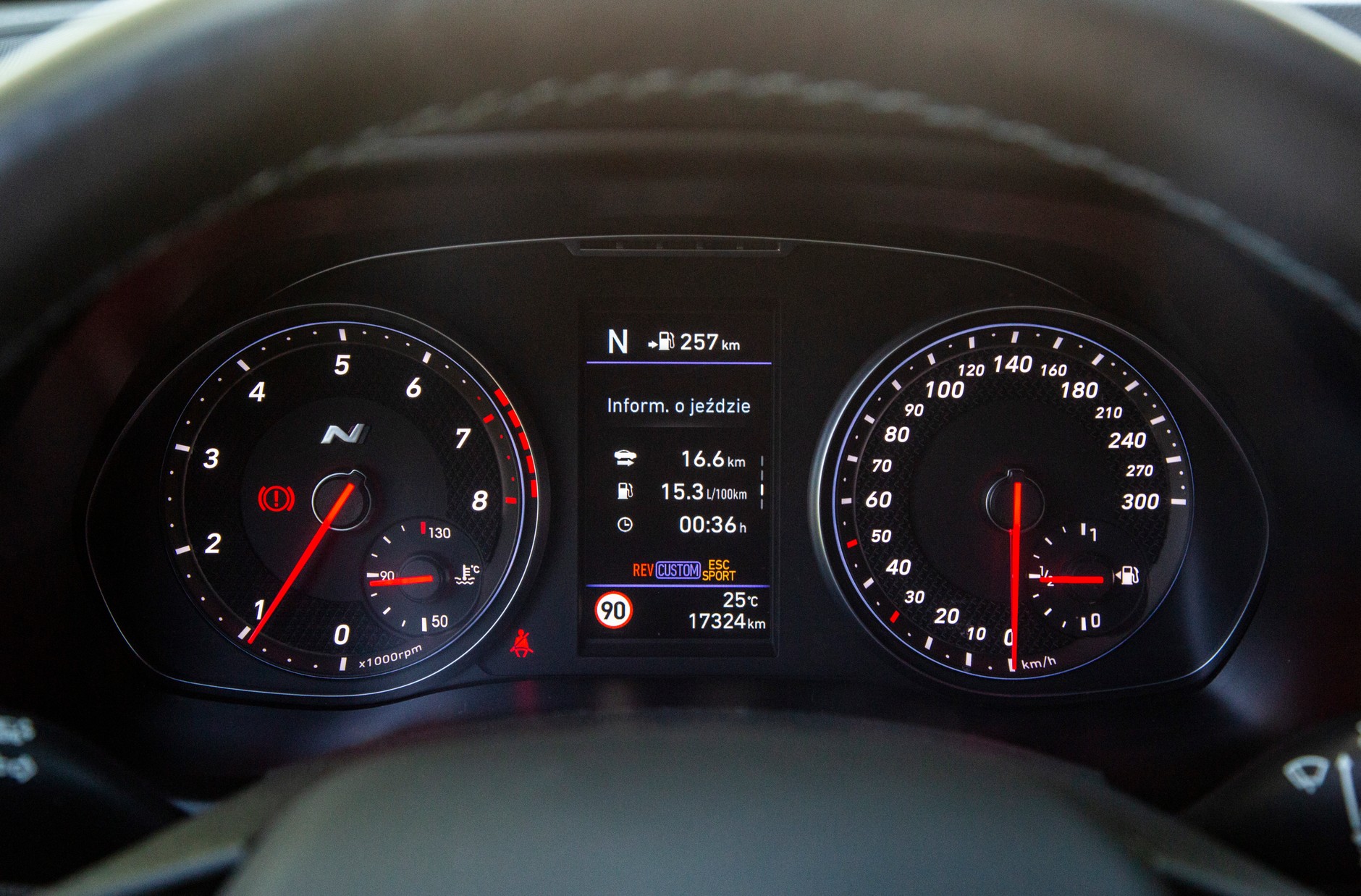 Przyznam, że z niecierpliwością czekałem na przejażdżkę pierwszym Hyundaiem ze znaczkiem N, czyli bezpośrednim konkurentem VW Golfa GTI. Pod maską pracuje silnik 2-litrowy w odmianie Performance o mocy 275 KM i momencie 353 Nm, który napędza przednie koła. Auto rozpędza się do setki w czasie 6,1 s i dobija do 250 km/h.