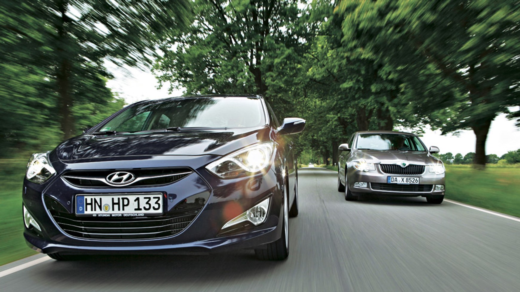 Skoda Superb przewyższa Hyundaia i40 także pod względem dynamiki prowadzenia. Podczas gdy „koreańczyk” ma skłonność do podsterowności, którą brutalnie pacyfikuje system ESP, Superba prawie nic nie jest w stanie wyprowadzić z równowagi. W Skodzie elektronika ma mniej pracy.