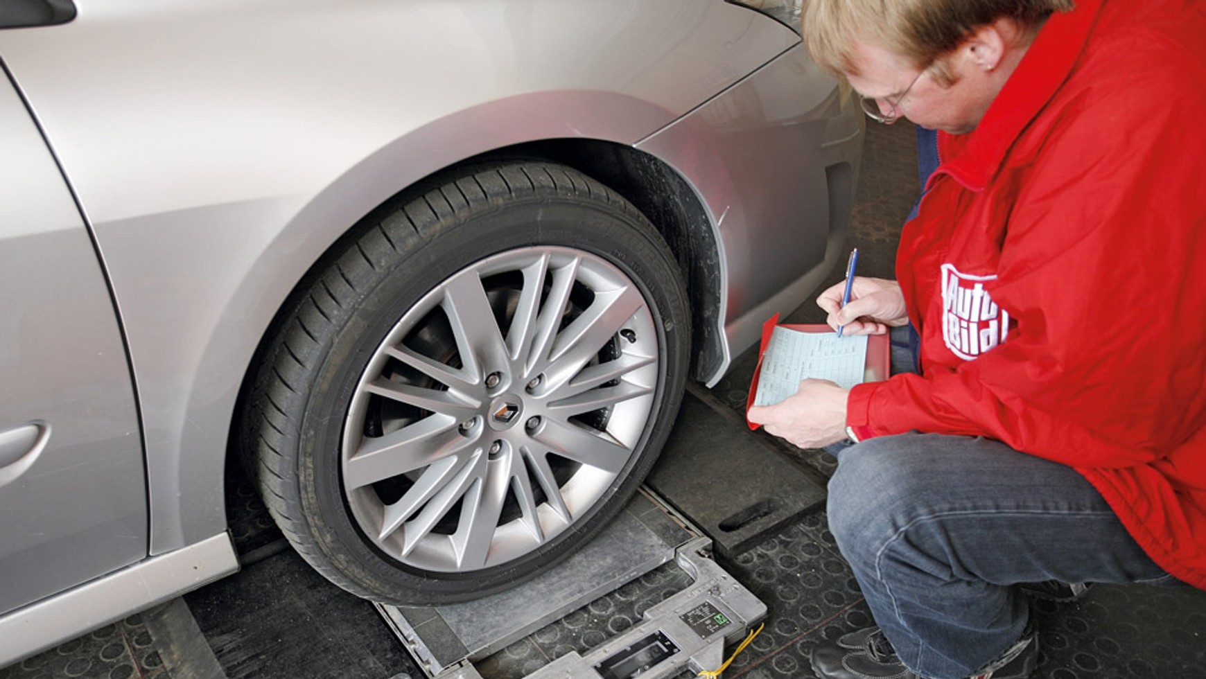Jak sprawdzamy masę własną? - Do ważenia samochodów testowych używamy wagi służącej do mierzenia nacisku jednostkowego. Maksymalny zakres pomiaru tego urządzenia to 1000 kg. Dzięki temu możemy sprawdzić nacisk każdego koła z osobna, nacisk na oś, całkowitą masę własną samochodu oraz rozdział masy przypadającej w procentach na przednią oraz tylną oś. Pomiary wykonujemy przy zbiorniku paliwa zatankowanym do pełna i bez kierowcy.