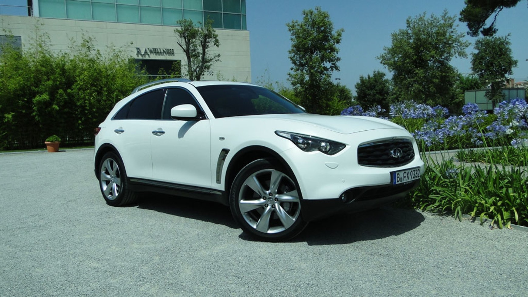 Zawieszenie jest takie samo jak w odmianach benzynowych: z przodu układ dwuwahaczowy, z tyłu wielowahaczowy, a w wersji S – z amortyzatorami z elektroniczną kontrolą tłumienia (CDC) oraz aktywnym sterowaniem tylnymi kołami skrętnymi (RAS). Charakterystyka układu sprawia, że FX bardziej przypomina sportowe coupé niż ciężkiego SUV-a – auto jest komfortowe, a jednocześnie przyjemnie twarde.
