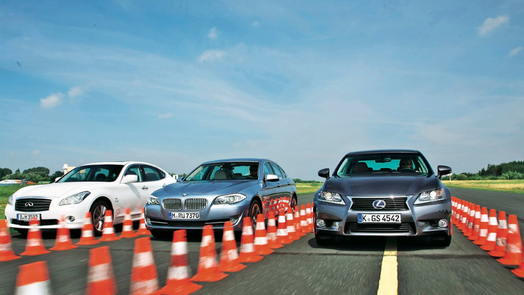 Każda z testowanych hybryd jest bardzo ciężka – szczególnie BMW (1938 kilogramów). To jednak wcale nie przeszkadza im przyspieszać jak najprawdziwsze sportowe limuzyny. Elektryczne silniki wspomagają benzyniaki BMW i Infiniti przy niskich obrotach podczas dynamicznego przyspieszania. Ciąg niemieckiego turbodoładowanego sześciocylindrowca jest na niskich obrotach mocniejszy od pracującego z niższą kulturą wolnossącego V6 w Infiniti.