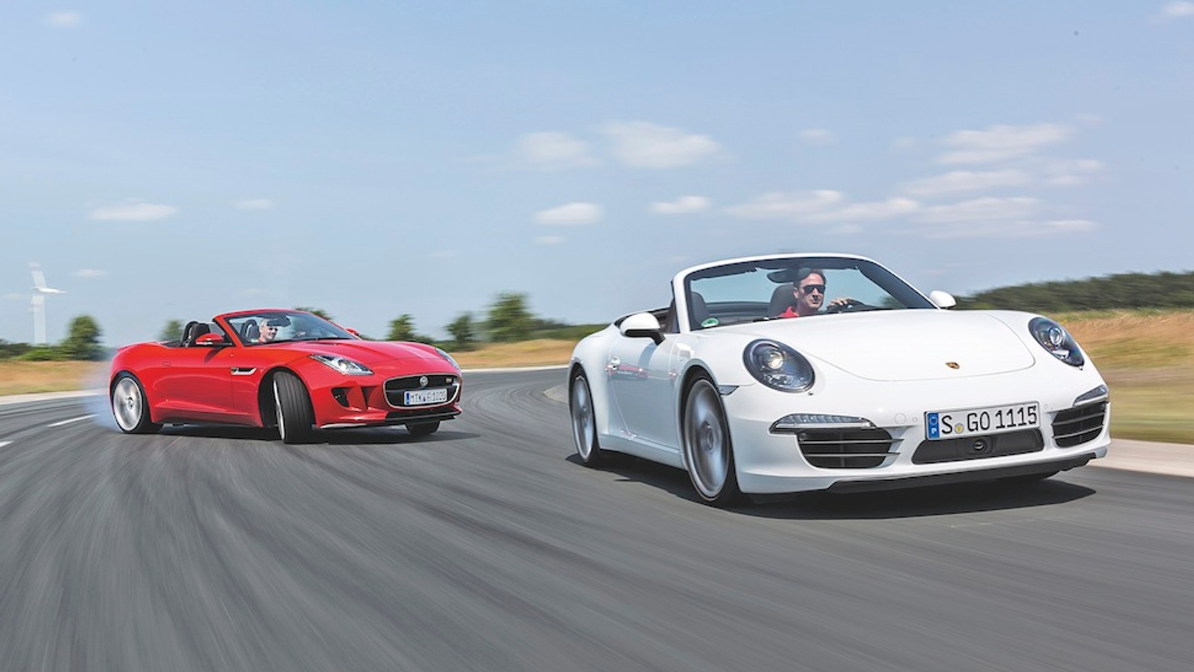 W bezpośrednim porównaniu Porsche nie daje Jaguarowi żadnych szans w kwestii dynamiki prowadzenia. Perfekcyjnie wyważone 911 w znakomitym czasie pokonuje czterokilometrowy odcinek toru, precyzyjnie trzymane na kursie przez dyskretnie oraz z wyczuciem interweniujący system ESP. Dzięki umieszczonemu z tyłu silnikowi przyspiesza na zakrętach bez konieczności ingerencji układu kontroli trakcji. I tak na jednym okrążeniu Porsche 911 okazało się o około 1,8 sekundy lepsze od Jaguara F-Type’a, mimo że jest aż o 95 KM słabsze.