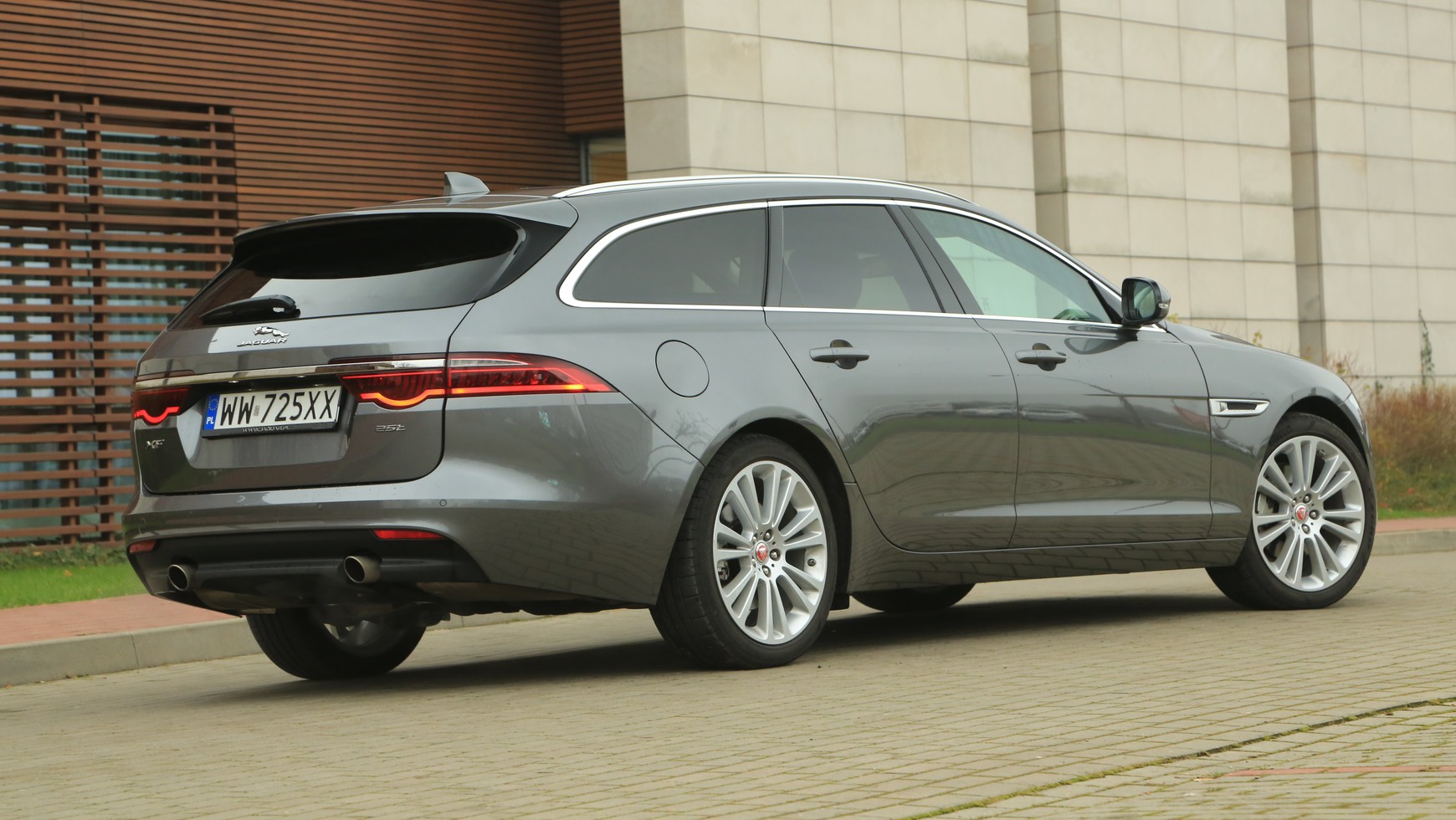 Owszem, sylwetkę sporządzono według sprawdzonej u rywali recepty. Mamy zatem nisko poprowadzoną linię dachu, muskularny przód, ścięty tył. W sumie to chyba najlepiej wyglądający Jaguar może poza F-Typem. Tyle że na szczęście w tym przypadku projektantom udało się wszystko razem poskładać tak zgrabnie i pomysłowo, że nie odczujemy tego w środku. Miejsca z tyłu jest naprawdę dużo, tyle, co w sedanie. A bagażnik? Tu też nie widzę, by wygląd wpłynął negatywnie na możliwości ładunkowe. Do dyspozycji mamy 565 litrów, czyli nieco więcej niż 540 litrów dostępnych w sedanie. Na dodatek są to litry łatwe do wykorzystania, dzięki wysoko podnoszonej tylnej klapie. Po złożeniu kanapy mamy zaś równą podłogę ładowni i aż 1700 litrów na bagaże. To poziom BMW serii 5, a które z tych aut lepiej wygląda, chyba nie muszę nikomu tłumaczyć. Dodam jeszcze, że tylne oparcie jest podzielone na trzy części, co ułatwia aranżację kabiny zgodnie z potrzebami.