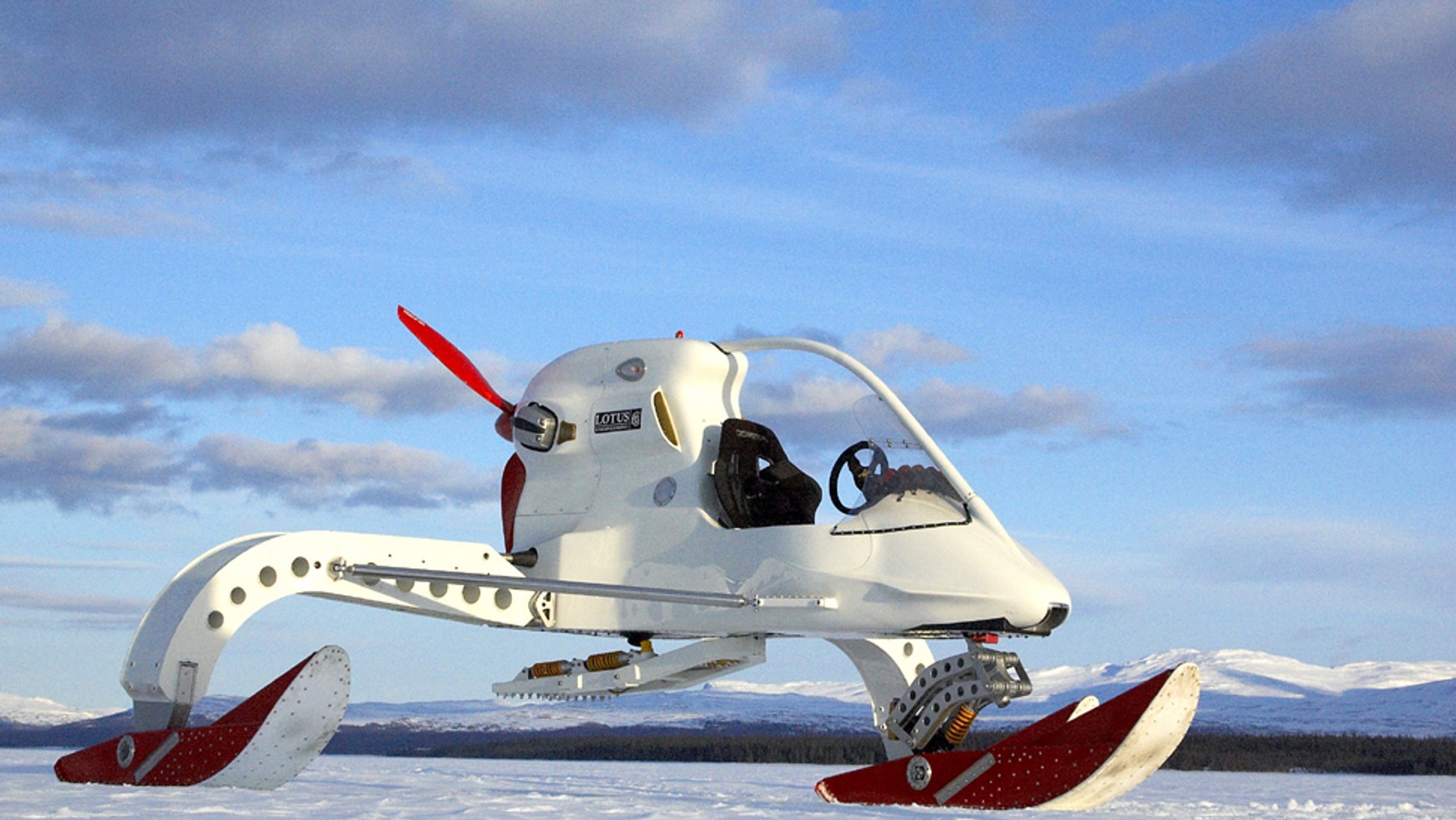 Pojazd Lotusa wykonano z superlekkich i jednocześnie bardzo odpornych na niską temperaturę materiałów – waży zaledwie 360 kg. Mierzący 4,5 m długości i 4,5 m szerokości pojazd spoczywa na trzech potężnych płozach. Każda z nich ma niezależne zawieszenie, by mogły dawać sobie radę z zastrugami. Zastrugi (z rosyjskiego) to forma ukształtowania terenu. Silne wiatry wywiewają śnieg, tworząc wydmy i doły, które przypominają powierzchnię drewna po struganiu. Pod kadłubem znajduje się jeszcze jedna kolczasta płoza, służąca do szybkiego zatrzymania maszyny na lodzie.