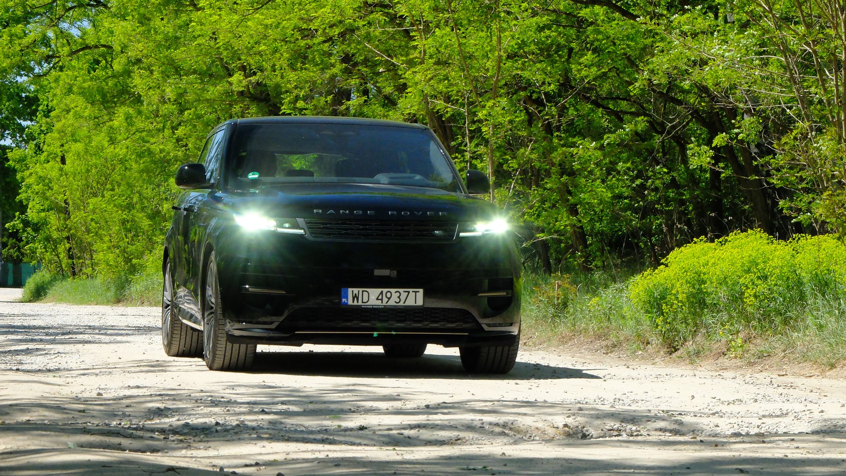 Range Rover Sport co wyróżnia się wśród innych luksusowych słów wyjątkowymi możliwościami terenowymi. Ma wiele opcji ustawiania napędu oraz układu przeniesienia napędu, ale myślę, że można poprzestać na tym, iż pojazd ten może brodzić na głębokości do 90 cm. To więcej niż w przypadku wielu seryjnych "prawdziwych" terenówek. Nie jestem pewien jednak, czy wykorzystywanie tego auta to jazdy po błocie jest najlepszym pomysłem. Testowy egzemplarz bez wątpienia miał już takie epizody za sobą, co widać zwłaszcza po lakierze: czarny pięknie metalizowany lakier kontra gałęzie na wąskich, szybko pokonywanych off-roadowych odcinkach… nie, to naprawdę nie ma sensu. Przejechałem więc na otwartej przestrzeni po nierównej drodze gruntowej kilometr z prędkością 80 km/h, wróciłem tą samą drogą, przekonałem się, że wszystko jest zmontowane zaskakująco solidnie, nie wpada w rezonans, nie telepie się, nie hałasuje, a pneumatyczne zawieszenie potrafi dostosować się do warunków… starczy. Jestem pewien, że znakomita większość użytkowników tego pojazdu też zadowoli się świadomością, że Range Rover Sport naprawdę potrafi wyjechać poza drogę utwardzoną, a nawet w ogóle poza drogę, a potem będzie wykorzystywać go głównie na asfaltach.