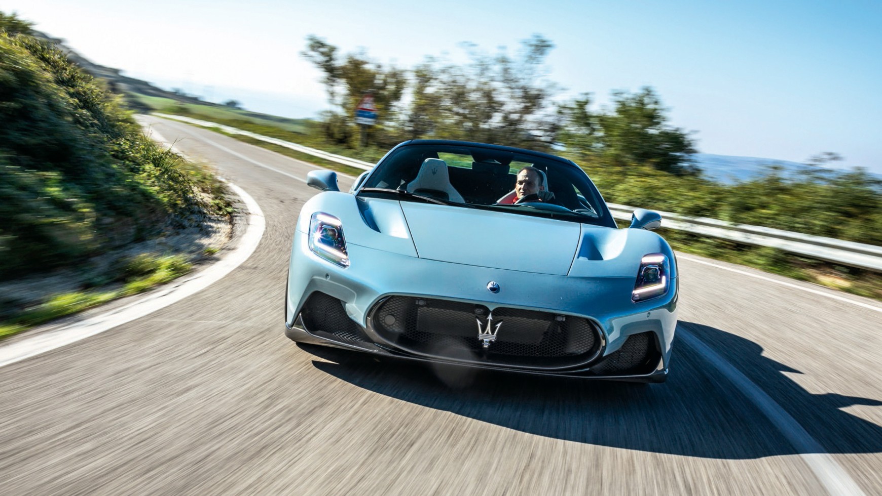 Radość z jazdy Maserati MC20 Cielo staje się większa, gdy pokrętło wyboru trybu przesunie się jeszcze o jeden stopień lub po prostu przyciśnie je przez 2 s. Wtedy włącza się tryb Corsa, czyli wyścigowy. System spalania z komorą wstępną z dwiema świecami zapłonowymi – technologia z Formuły 1 – odpala teraz na obu stopniach, a zawory wylotowe są zawsze otwarte. Przy tej okazji staje się jasne, jak znakomicie wyważone jest Cielo, i to mimo dodatkowych 65 kg masy, które kosztuje elektrycznie otwierany dach. Działanie hamulców zostało ekstremalnie wyostrzone, jeśli więc karbonowy układ nie jest dostatecznie rozgrzany, spowalnianie wymaga wysiłku.