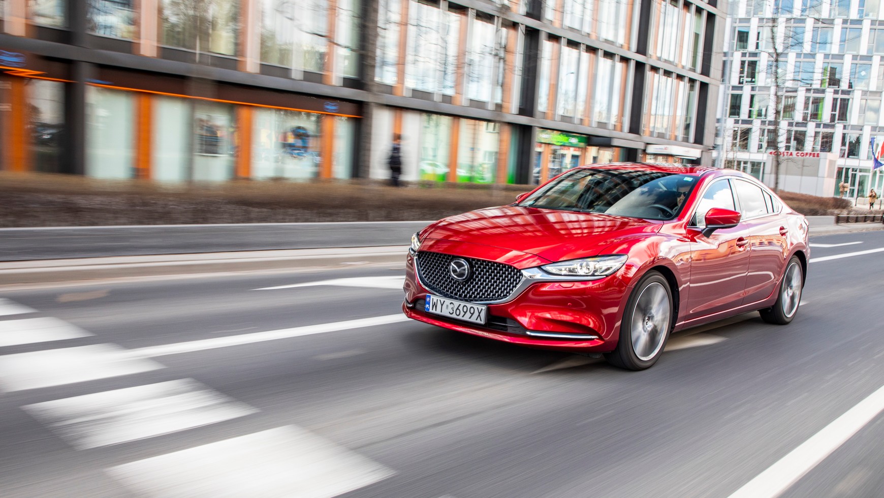 Flagowy model Mazdy należy do grupy aut, z których korzystanie daje sporo satysfakcji. Poza układem jezdnym i napędowym do jego zalet należy zaliczyć pełną elegancji stylistykę nadwozia, zwłaszcza w soczystym kolorze Soul Red Crystal , oraz przestronne i wzorowo wykończone wnętrze. Czy coś wymaga poprawy? Podobnie jak przy okazji testów innych wersji silnikowych modelu tak i tu uwagi mieliśmy do systemu multimedialnego, a właściwie rozdzielczości ekranu, która na tle konkurentów prezentuje się dość oldschoolowo.