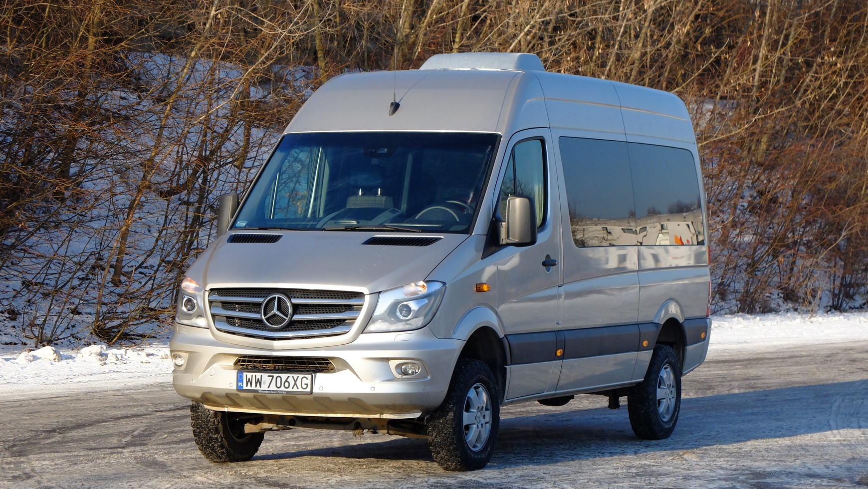 Oto pojazd prawie idealny do wożenia dziewięciu leśników z dziewięcioma pilarkami spalinowymi do wycinania puszczy; prawie idealny, bo w warunkach leśnych lepiej wybrać wersję z niższym dachem. To doskonała wersja busa do świadczenia usług przewozowych w terenach górskich. Sprinter 4x4 zda egzamin także i na budowie, gdy cel podróży znajduje się na środku dużego pola, gdzie wczoraj jeszcze rosła kapusta lub kiełkowało zboże. To dobry środek transportu dla ekipy energetyków. A może przydałby się jako busik dla dużej rodziny? Chętnie, jednak w warunkach miejskich raczej z niskim dachem i w krótszej wersji – parkowanie średniej długości Sprinterem pod hipermarketem wymaga i chwili zastanowienia, i wyraźnie większej przestrzeni niż w przypadku osobówki, zaś dodatkową przeszkodą są gałęzie drzew – łatwiej o nie zawadzić niż się wydaje.