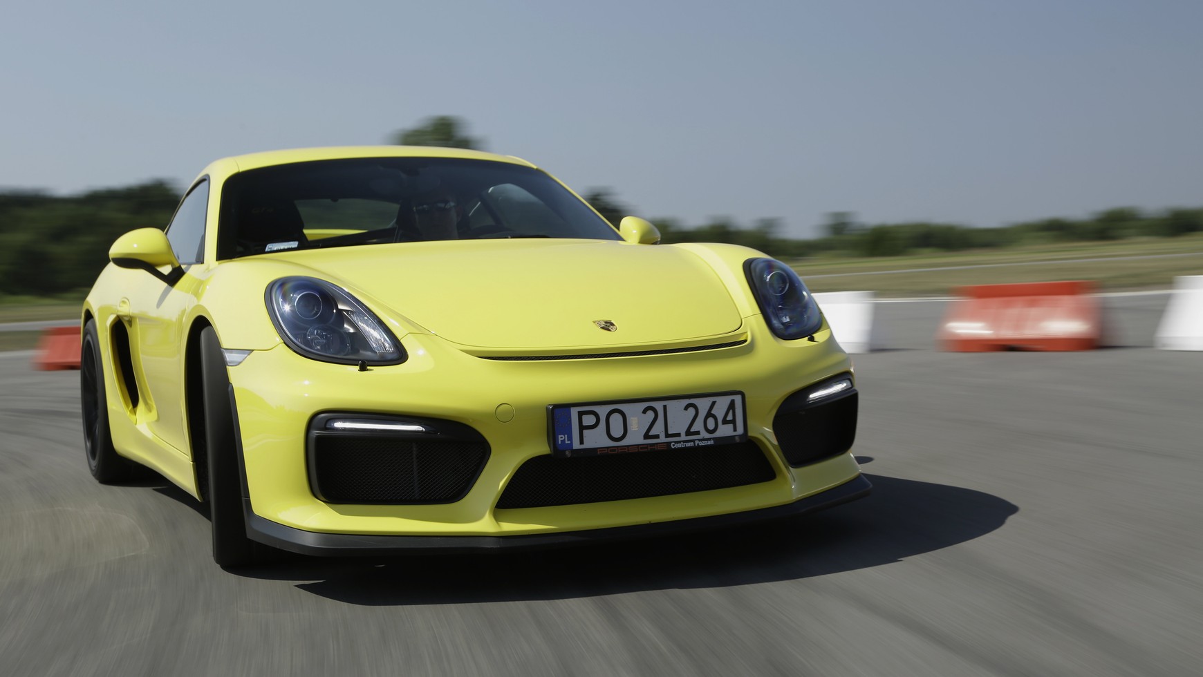 Możliwości najnowszej wersji Caymana sprawdzaliśmy na zamkniętym torze Jastrząb znajdującym się niedaleko Radomia. Konfiguracja toru uniemożliwiła co prawda osiągnięcie prędkości maksymalnej (295 km/h), ale liczne ciasne łuki stanowiły poważne wyzwanie dla napędu, układu kierowniczego, zawieszenia i hamulców. Już samo uruchomienie prawie 4-litrowego boksera wywołuje gęsią skórkę. Po starcie silnika do uszu kierowcy dociera dźwięk przypominający eksplozję. Pracująca na wolnych obrotach jednostak do cichych nie należy. Sportową atmoaferę we wnętrzu podnoszą znakomicie wyprofilowane, choć niezwykle twarde kubełkowe fotele z 6-punktowymi pasami bezpieczeństwa (pochodzą z modelu 918 Spyder), ciężko przemieszczające się pedały sprzęgła i hamulca (do jazdy tym autem lepiej założyć buty z twardą podeszwą), pracująca z charakterystycznym oporem dźwignia manualnej zmiany biegów oraz sportowa trójramienna kierownica.