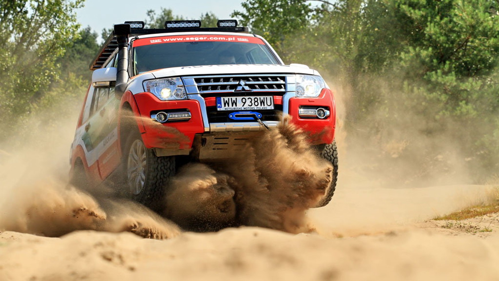 Zdziwiliśmy się też, jak komfortowym samochodem pozostało tak przygotowane do offroadu Mitsubishi – mimo podniesienia nadwozia i zastosowania terenowych opon bez najmniejszych problemów można poruszać się nim z autostradową prędkością. Gdyby nie zawirowania powietrza, spowodowane głównie nadbudową (belka świetlna, bagażnik, namiot), którym towarzyszy charakterystyczny świst, w ogóle nie mielibyśmy wrażenia poruszania się tak wysokim i potężnym autem. Jednostka pod maską Pajero to 4-cylindrowy turbodiesel, który nie grzeszy może najwyższą kulturą pracy (chodzi nam przede wszystkim o jego twarde brzmienie), ale okazuje się za to bardzo dynamiczny.