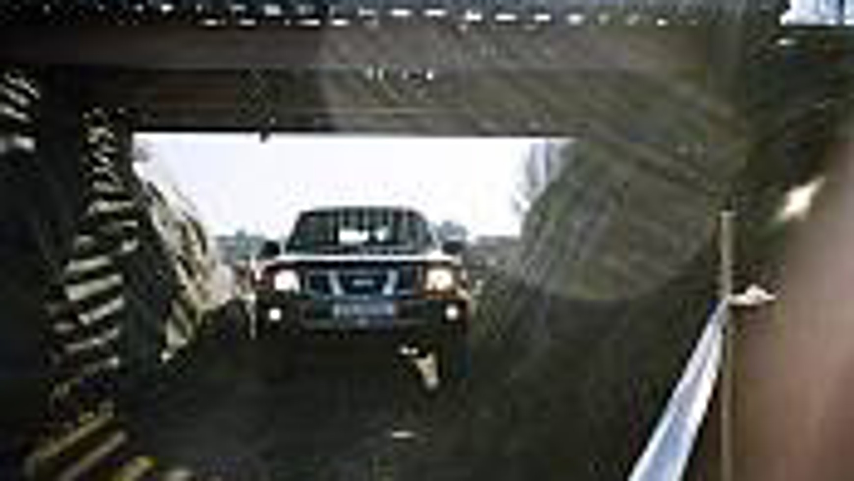 No i w końcu jazda. Niestety nie dane było wyruszyć w trasę, a jedynie można było pokonać Patrolem terenowy tor. W tym teście Patrol wypadł naprawdę bardzo dobrze. 3-litrowy silnik wysokoprężny o mocy 160 KM (poprzednio 153 KM) i maksymalnym momencie obrotowym 380 Nm przy 2000 obr/min. bez problemów poradził sobie z masą 2365 kg. A tor był przygotowany przez profesjonalistów w zakresie jazd terenowych. Były strome podjazdy, gdzie widać było tylko maskę auta, i zjazdy (szybko zbliżające się podłoże), oczywiście był przejazd przez bród (ponad pół metra), było błoto, przejazd przez bajoro po balach drewnianych. w każdym przypadku Patrol zachował się poprawnie. Dane producenta mówią same za siebie: kąt natarcia 37 st., maksymalny kąt przechyłu bocznego 47 st., zdolność pokonywania wzniesień 39 st., kąt zejścia 31 st. i prześwit 220 mm. Jednak najistotniejsza sprawa to napęd. Do dyspozycji są trzy tryby przeniesienia napędu. Pierwszy - drogowy - to napęd na jedną oś (2H) służy do poruszania się po normalnych drogach. Napęd na obie osie (4H) służy do pokonywania nierównych, zaśnieżonych, kamienistych, niezbyt trudnych dróg oraz napęd (4L) także na cztery koła z reduktorem przewidziany do najcięższego terenu. Zastosowany reduktor pozwala na jazdę bez naciskania jakichkolwiek pedałów, układ sam dozuje odpowiednią moc oraz pracę hamulców.