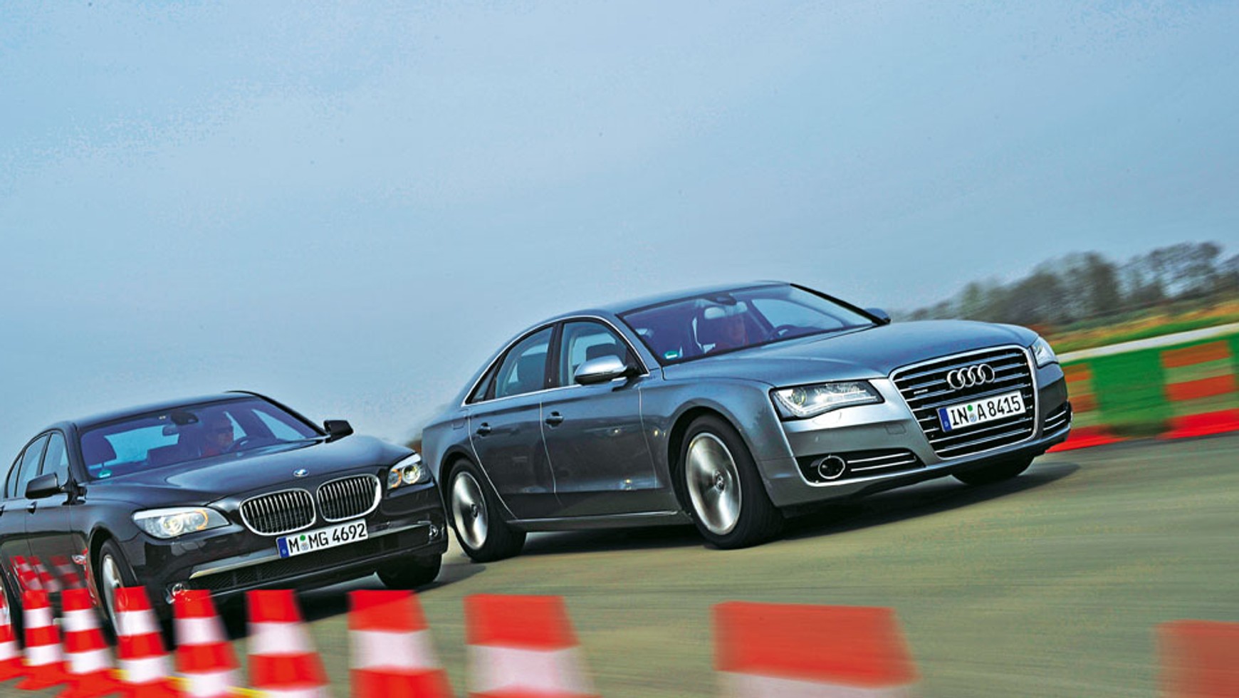 Obie limuzyny mają chętnie wkręcające się na wyższe obroty silniki. Doładowane BMW brzmi groźniej, intonacja wolnossącego Audi jest za to bardziej melodyjna. A8 zostało także lepiej wyciszone. We wnętrzu prawie w ogóle nie słychać szumu wiatru, podobnie jak odgłosów toczenia, których nie sposób zignorować, gdy podróżuje się BMW.