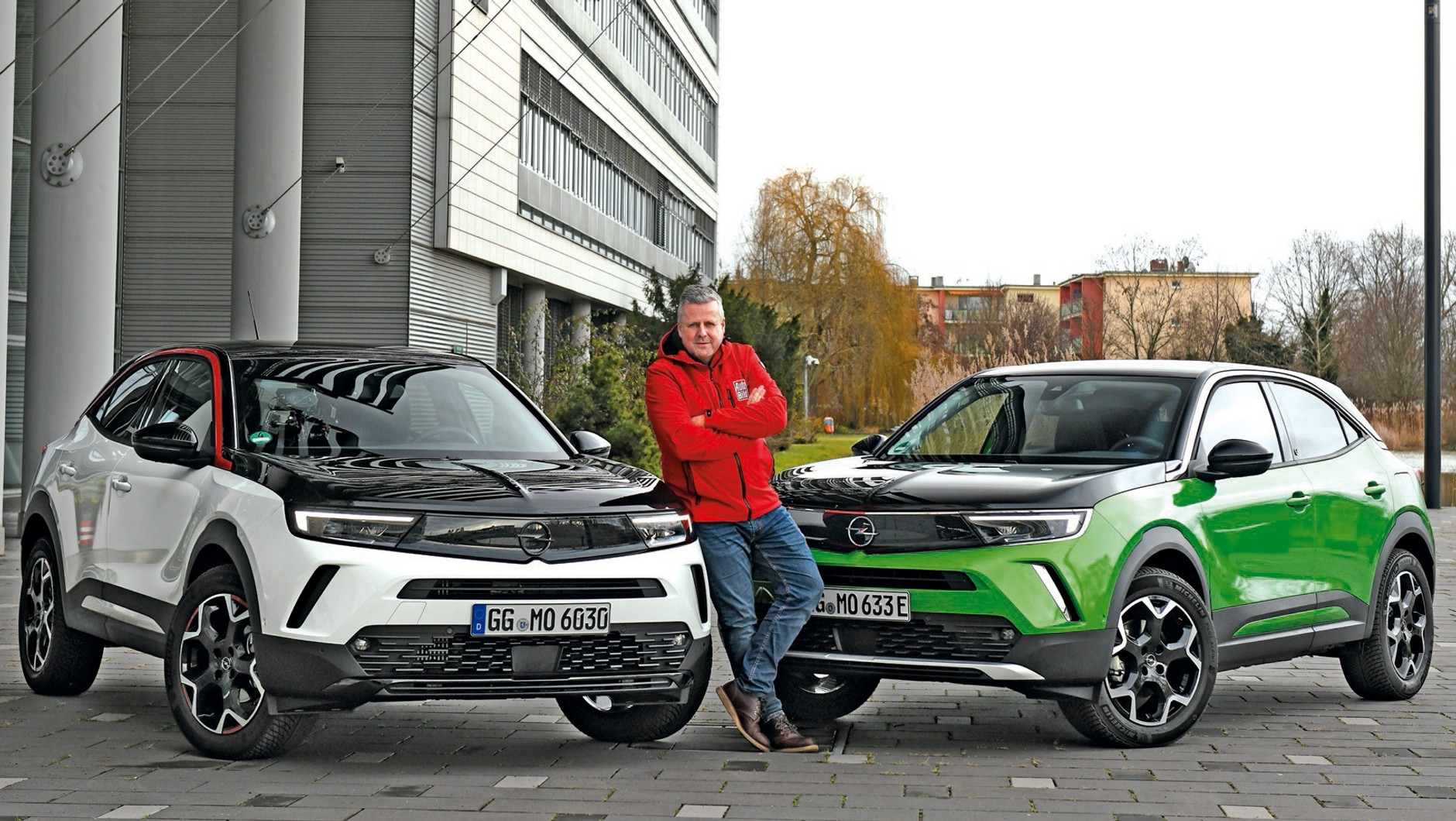 Nie mówimy tego na wyrost, bo wystarczy już rzut oka na testowe egzemplarze, które dostaliśmy do pierwszych jazd, by stwierdzić, że budzą sympatię. Krótkie zwisy nadwozia, dwukolorowy lakier (dach i maska mogą być czarne jak w starych rajdówkach) i 18-calowe alufelgi nadają sylwetkom dynamiczny, nowoczesny styl, który dobrze pamiętamy jeszcze z modelu studyjnego. Widoczny na zdjęciach egzemplarz z białym lakierem ma benzynowy silnik 1.2 o mocy 130 KM współpracujący z 8-biegowym „automatem”, natomiast zielona Mokka to 136-konna wersja elektryczna. Ceny pierwszej startują od 96 250 zł, za drugą trzeba zapłacić minimum 139 900 zł (póki co bez premii ekologicznej, która np. w Niemczech sięga 9570 euro, czyli ponad 40 tys. zł).