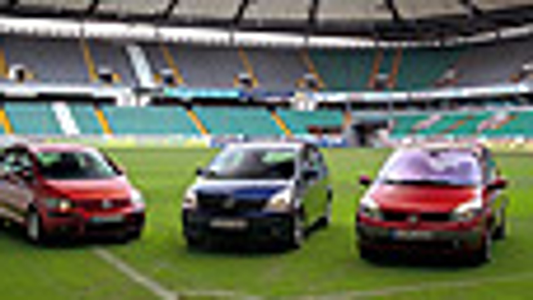 W Toyocie układ kierowniczy pracuje sprawnie i pewnie, choć nie reaguje równie żwawo i bezpośrednio. Zawieszenie Verso jest trochę "drewniane", łoskocze nawet na niewielkich nierównościach poprzecznych na autostradzie. Golf Plus pochłania niedoskonałości jezdni o wiele bardziej elegancko. Renault jest jakby z innej bajki.