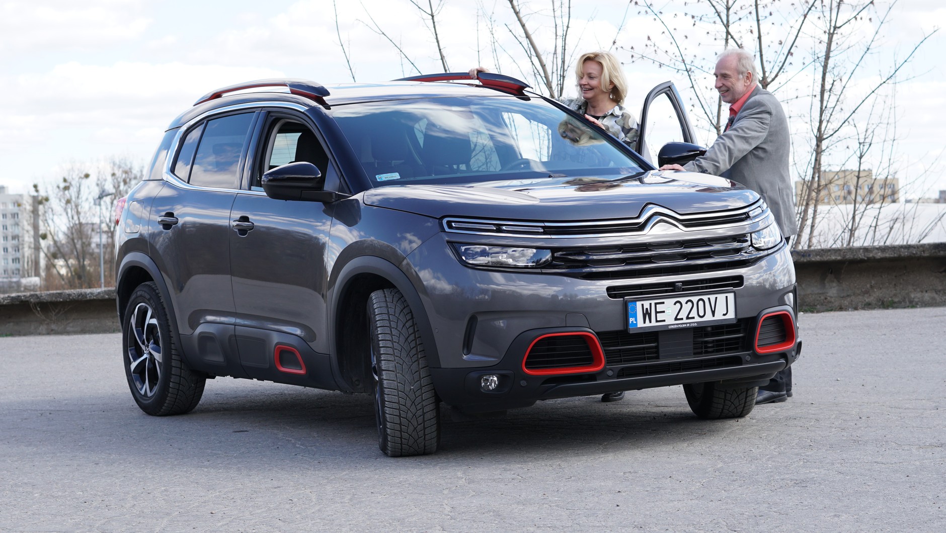 Do przetestowania tegorocznej nowości – Citroëna C5 Aircross z najmocniejszym, niemal 180-konnym dieslem 2.0 i automatyczną skrzynią biegów – zgłosiło się dwoje Czytelników z Warszawy: Ewa Racka i Ryszard Korlak. Nie ukrywaliśmy, że tym razem będą mogli przejechać się wyjątkowo komfortowym SUV-em! Zaczęliśmy jednak od dokładnego obejrzenia najnowszego francuskiego modelu na postoju. Jak zauważył Ryszard: Dzisiaj coraz trudniej jest się wyróżnić, bo w sumie wszystkie SUV-y wyglądają podobnie, a tu, w przypadku C5 Aircrossa, czekało mnie spore zaskoczenie, bo ten SUV ma swój styl.