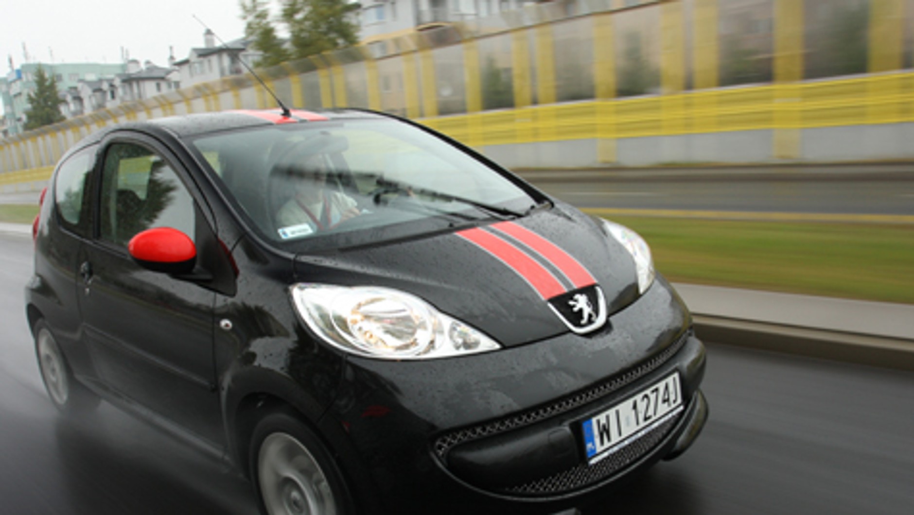 Na tym „sportowość” się kończy. W standardowym wyposażeniu brakuje nawet obrotomierza! Nadwozie/jakość. Na ekskluzywnych autach znaleźć można tabliczki z podpisami techników odpowiedzialnych za złożenie auta. Na Peugeocie 107 powinna za to znaleźć się tabliczka z podpisem księgowego, który ciął koszty produkcji. Auto wykonano starannie, ale plastiki we wnętrzu wyglądają tak, jakby jeszcze niedawno były kubkami po jogurcie. Tam gdzie można było z czegoś zrezygnować – rezygnowano. Na szczęście nie kosztem funkcjonalności i ergonomii. Niepraktyczny jest tylko mały bagażnik (pojemność 130 l), z dostępem przez wykonaną ze szkła i plastiku namiastkę klapy. Układ napędowy/osiągi. Malutki, litrowy silnik wystarcza, żeby auto miało niezły temperament. Na „jedynce” można się spokojnie rozpędzać do ponad 50 km/h, „dwójka” kończy się powyżej 100 km/h, a na „trójce” da się podróżować po autostradzie. Ruszając spod świateł, nie trzeba mieć kompleksów. 68 KM i sportowe doznania? O, tak! Układ jezdny/komfort. Mały Peugeot prowadzi się jak gokart. To zasługa sztywnego, choć zapewniającego akceptowalny komfort zawieszenia i bezpośredniego, wręcz nerwowo reagującego układu kierowniczego.Koszty/bezpieczeństwo. Za 35 800 zł otrzymujemy atrakcyjnie wyglądające auto, wyposażone m.in. w dwa airbagi oraz ABS. Bieżące koszty eksploatacji są niskie, bo nawet podczas ostrej jazdy trudno spalić więcej niż 6,5 l/100 km. Jeżdżąc ostrożnie, uda się zejść do nieco ponad 4 litrów. Mniej ostrożni kierowcy ucieszą sięzapewne z czterech gwiazdek uzyskanych przez ten model w testach Euro NCAP