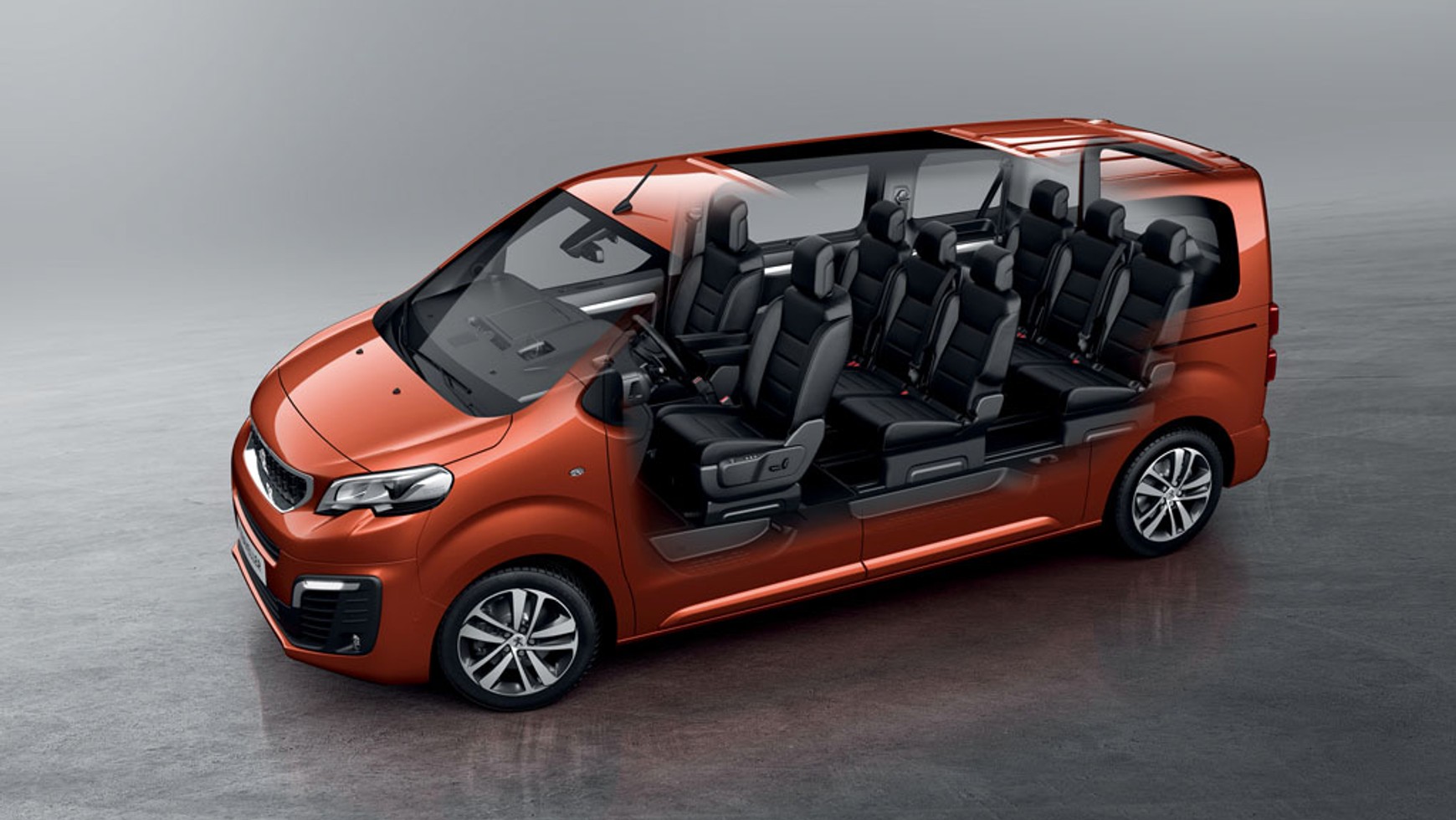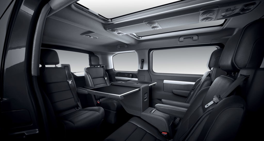 Wszystkie warianty łączy jedna cecha – luksusowe wykończenie wnętrza. W Peugeot Traveller znajdziemy m.in.: grube materiałowe wykładziny, skórzane fotele z podłokietnikami, stolik, dach panoramiczny, 3-strefową klimatyzację, elektrycznie otwierane i zamykane boczne drzwi, czy klimatyczne oświetlenie ambient. Całkiem sporo jak na busa? To tylko cześć z długiej listy dostępnych opcji na liście Peugeot Traveller.