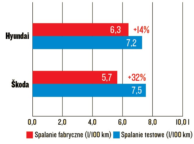 w porównaniu ze Škodą, to na dodatek odchylenie od danych katalogowych wyniosło zaledwie 14 proc.! U rywalki: 32 proc. To duża różnica. Niemniej jak na swoją wielkość, masę i osiągi oba samochody okazały się oszczędne.