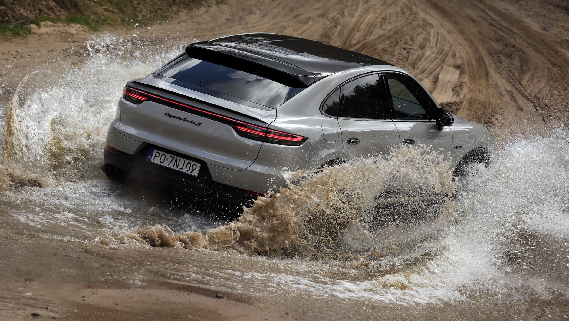 Cayenne Turbo S e-hybrid Coupé jest także gotów stawić czoła poważniejszym wertepom.