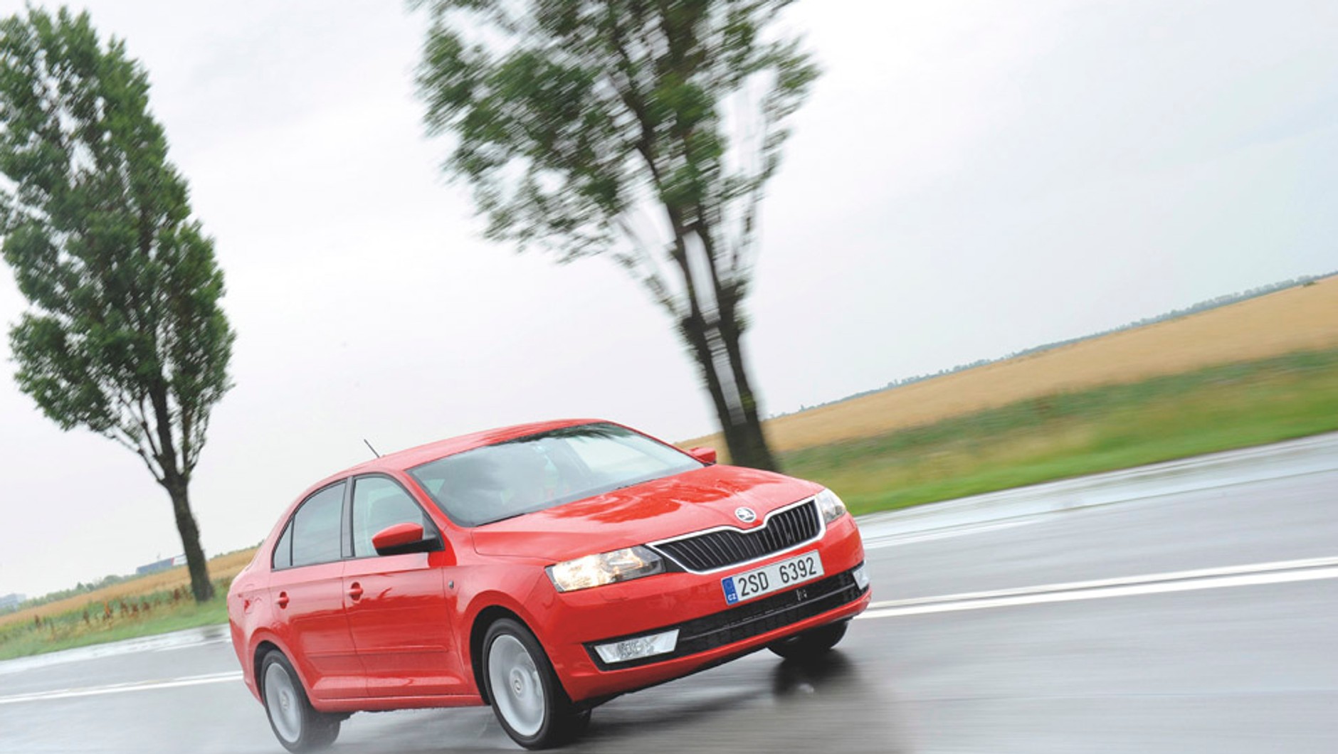 Tak było i tym razem – jeździliśmy najwyższą odmianą Elegance z klimatyzacją, nawigacją, elektrycznym sterowaniem szybami itp. Wersje podstawowe takich bajerów mieć nie będą, ale znajdziemy w nich system start-stop, komplet airbagów oraz układ stabilizacji toru jazdy ESP. W tym miejscu rada: na polskim rynku Rapid powinien mieć seryjną klimatyzację (lub za dopłatą góra 1-1,5 tys. zł).