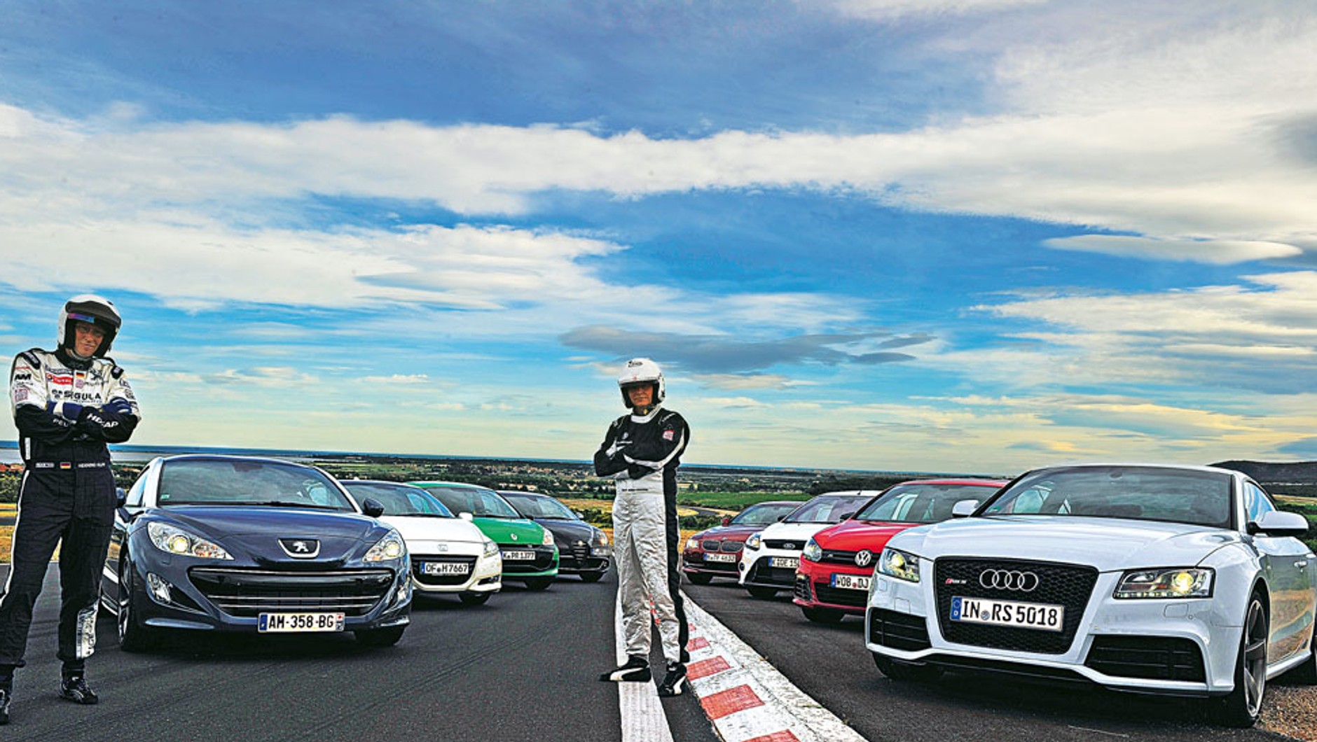 Stawkę otwiera nowe Audi RS5, którego przyjemnie hałasujące V8 zagłusza rywala z Monachium. To BMW 335i, pod maską którego mruczy genialna, podwójnie doładowana, rzędowa szóstka. Także dwulitrowe turbo w Golfie R przegrywa „bój o ryk” z Audi. Godną walkę nawiązać by mogła rasowa, pięciocylindrowa jednostka turbo z 305-konnego Focusa RS. Dalej mamy już mniej koni, ale wcale nie mniej hałasu. Obok wściekłego Renault Clio R.S. na tor zabraliśmy jeszcze stylowego Peugeota RCZ oraz Alfę Romeo MiTo QV. Stawkę zamyka japoński ekobohater, czyli Honda CR-Z. Które auto zostanie naszym ulubieńcem?