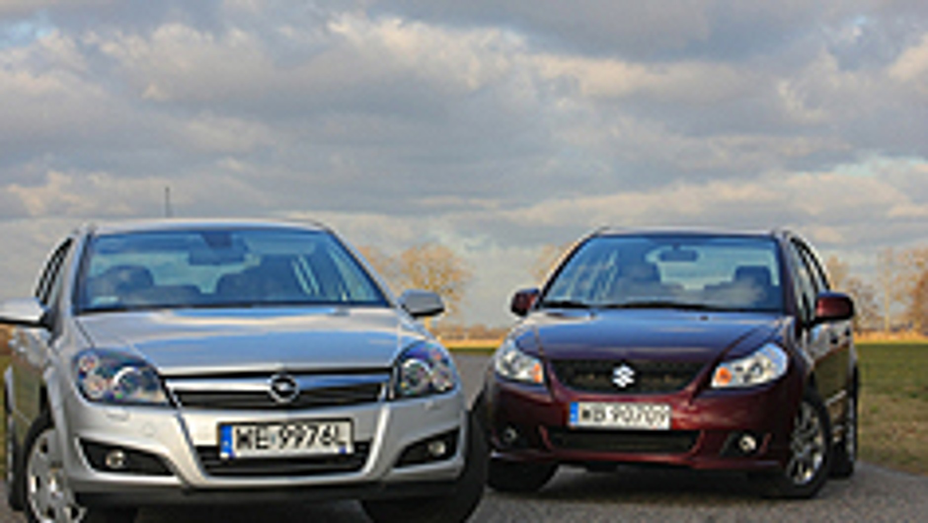 Czy długie i pękate auto na pewno będzie przestronne? Nasz test pokazuje, że wcale tak być nie musi! Zacznijmy od Opla. Sedan zbudowany na bazie Astry maw porównaniu z wersjąhatchback przedłużony przedział pasażerski. I to widać - siadając z tyłu, można się poczuć jak w luksusowej limuzynie. Miejsca na nogi i nad głowami nie powinno zabraknąć nawet koszykarzom. Dodatkowym plusem są duże tylne drzwi, ułatwiające zajmowanie miejsc. Żeby poczuć różnicę, wsiądźmy teraz na tylną kanapę Suzuki. Wysoki pasażer też się tam wciśnie, niemniej na tle Opla jest ciasno. Poza ograniczoną ilością miejsca na nogi w wygodnym podróżowaniu przeszkadza znacznie krótsze siedzisko, chociaż - umieszczone na większej wysokości niż w Astrze - lepiej podpiera nogi jadących. Na tle Suzuki Opel to superprzestronna brykaZ przodu różnica jest także odczuwalna, szczególnie że brak poziomej regulacji kolumny kierownicy w Suzuki przeszkadza kierowcy w zajęciu wygodnej pozycji. Kokpit SX4 będzie dobrze służył prowadzącemu o wzroście nie większym niż 175-180 cm, powyżej tej granicy fotel nie podpiera nóg kierowcy, bo nie można go już bardziej odsunąć do tyłu. A przecież z punktu widzenia kierowcy i pasażera Astra nie jest mistrzem przestronności w klasie kompaktów. Kolejnym, bardzo mocnym minusem Suzuki są ograniczające widoczność podwójne słupki przednie. Podczas manewrowania w zasłanianym przez nie "martwym polu" zmieści się pieszy, rowerzysta, a nawet nieduże auto! To obniża bezpieczeństwo w miejscach, gdzie kierowca powinien się rozejrzeć pod niewielkim kątem, czyli np. na małych rondach. Skoro Opel jest o klasę większy w środku, to może przegra ergonomią obsługi?Owszem, tutaj stroniący od udziwnień i eksperymentów Japończycy wykazali się tradycyjnym myśleniem. I bardzo dobrze - "elektroniczne" dźwignie kierunkowskazów Opla dezorientują prowadzącego i innych kierowców, którzy zobaczą Astrę sygnalizującą zamiar skrętu raz w lewo, raz w prawo. W SX4, jak za starych, dobrych czasów, wszystko działa tradycyjnie. Prosto i skutecznie. No, może z malutkim uchybieniem: pokrętła klimatyzacji powinny lepiej pokazywać, w jakiej znajdują się pozycji. A co z jakością wykończenia wnętrza? Astra okazuje się bardziej przytulna. Jej miękkie plastiki sprawiają na tle topornego i twardego jak skała kokpitu Suzuki niemal luksusowe wrażenie.Astra wygrywa z SX4 jakością wykończeniaW rodzinnym sedanie nie sposób nie zajrzeć do bagażnika. Tutaj obaj konkurenci mają co pokazać i dumnie otwierają swoje - niestety, skromne - klapy. Do Astry trudniej będzie zapakować wysokie pudło, SX4 oferuje praktyczniejszy otwór załadunkowy. Japończycy za to zapomnieli o uchwycie pozwalającym zamknąć otwartą klapę od wewnętrznej strony bez brudzenia sobie rąk. Skoro nadwozie Opla nie dało szans Suzuki na rozwinięcie skrzydeł, to może inne talenty pozwolą na zmianę lidera? Silnik SX4 ma lżejszą pracę, bo musi popychać o prawie 125 kg mniej niż motor Astry. Prowadząc każde z aut, trudno o tym zapomnieć. Opel rozpędza się dostojniej, ale z wyraźnym ociąganiem. Plus można przyznać za rozkład momentu obrotowego Astry, która równie mozolnie przyspiesza na niskich, jak i wysokich obrotach. Suzuki jest inne i ma bardziej narowisty charakter.Do mniej więcej 3000 obrotów niewiele się dzieje, ale powyżej tej granicy motor łapie drugi "oddech" i ochoczo zabiera się do pracy. Można się nawet pokusić o nazwanie tego "sportowym duchem". W utrzymaniu silnika na wysokich obrotach pomaga pewnie i twardo przełączająca skrzynia biegów. Opel też ma niezłą skrzynię, jednak niektórym mogą przeszkadzać tradycyjne dla niemieckiej marki długie skoki lewarka, do których na szczęście można się szybko przyzwyczaić. A co z zawieszeniem? Rodzina lubi podróżować w komforcie. Często kłóci się to z "dynamicznymi" ambicjami kierowcy. O kim pomyśleli projektanci?Opel resoruje sztywno, ale na tle Suzuki jego układ jezdny działa w bardziej wyszukany sposób. Podczas slalomu czuje się, że zawieszenie Opla wykazuje znaczne rezerwy możliwości i z łatwością poradzi sobie z większością sytuacji, w których Suzuki może już mieć poważne kłopoty. Mniej pewnie prowadzący się "japończyk" ma za to seryjnie w wersji GS montowany system stabilizacji toru jazdy ESP, który pozwoli wyjść z opresji obronną ręką. Suzuki nokautuje ceną i bogatym wyposażeniem W tej sytuacji powstaje pytanie: czym może kierować się nabywca, kupując co prawda szybsze, ale ciaśniejsze, gorzej wykończone, mniej komfortowo resorujące i słabiej radzące sobie na drodze Suzuki zamiast dojrzalszego i bardziej dopracowanego Opla? To proste: ceną! Aby uwypuklić przewagę SX4, specjalnie wybraliśmy auta w najbogatszych wersjach wyposażeniowych. I co się okazało? Opel, mimo że jest droższy aż o 17 tys. złotych, nadal ma gorsze wyposażenie! Suzuki pokazuje swoje atuty: automatyczna klimatyzacja, elektrycznie sterowane szyby tylnych drzwi, kurtyny powietrzne, a także wspomniane już ESP - wszystko w cenie auta! Do tego np. system bezkluczykowego dostępu, dzięki któremu SX4 nie tylko uruchomimy, ale też otworzymy drzwi i bagażnik bez konieczności wyjmowania pilota z kieszeni. Bardzo wygodne, a poza tym znacznie trudniej zgubić kluczyk! Do tego dochodzi 3-letnia gwarancja, a także wizerunek marki Suzuki, której japoński rodowód w powszechnym odczuciu prognozuje wysoką niezawodność i solidność.PodsumowanieJeżeli masz nie więcej niż 175-180 cm wzrostu, nie potrzebujesz przytulnej kabiny i nie przeszkadzają ci twarde plastiki kokpitu, kup narowiste Suzuki. Będziesz się pławił w luksusowym wyposażeniu, a przy okazji zaoszczędzisz mnóstwo pieniędzy! Jeżeli jednak jesteś wysoki, bardziej wybredny, a dzieci grają w "kosza", wybierz droższą, ale bardziej dopracowaną Astr