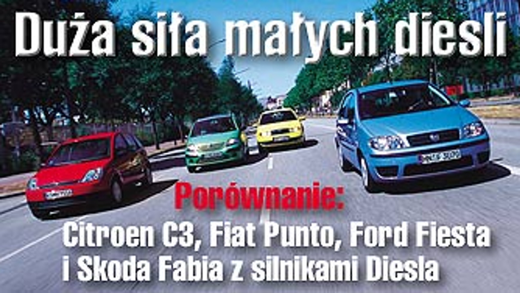 Przecież każdy spośród czwórki jednotonowych rywali (masa własna 1075 do 1200 kg) bez kompleksów bierze się za wyprzedzanie, śmiga przez miasto napędzany przez swoje 68-75 koni, zużywając przy tym pięć litrów oleju napędowego (CitroĎn C3 i Skoda Fabia 4,8 l/100 km, a Fiat Punto oraz Ford Fiesta 5,0 l/100 km).