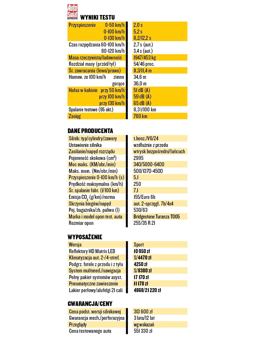 Za enigmatycznym oznaczeniem kryje się 340-konne, 3-litrowe benzynowe V6, które zachwyca niezwykle cichą i spokojną pracą. Już od 1370 obr./min jest dostępny maksymalny moment 500 Nm, jego „fala” ciągnie się aż do 4500 obr. Natomiast maksymalna moc rozciąga się w przedziale 5000-6400.