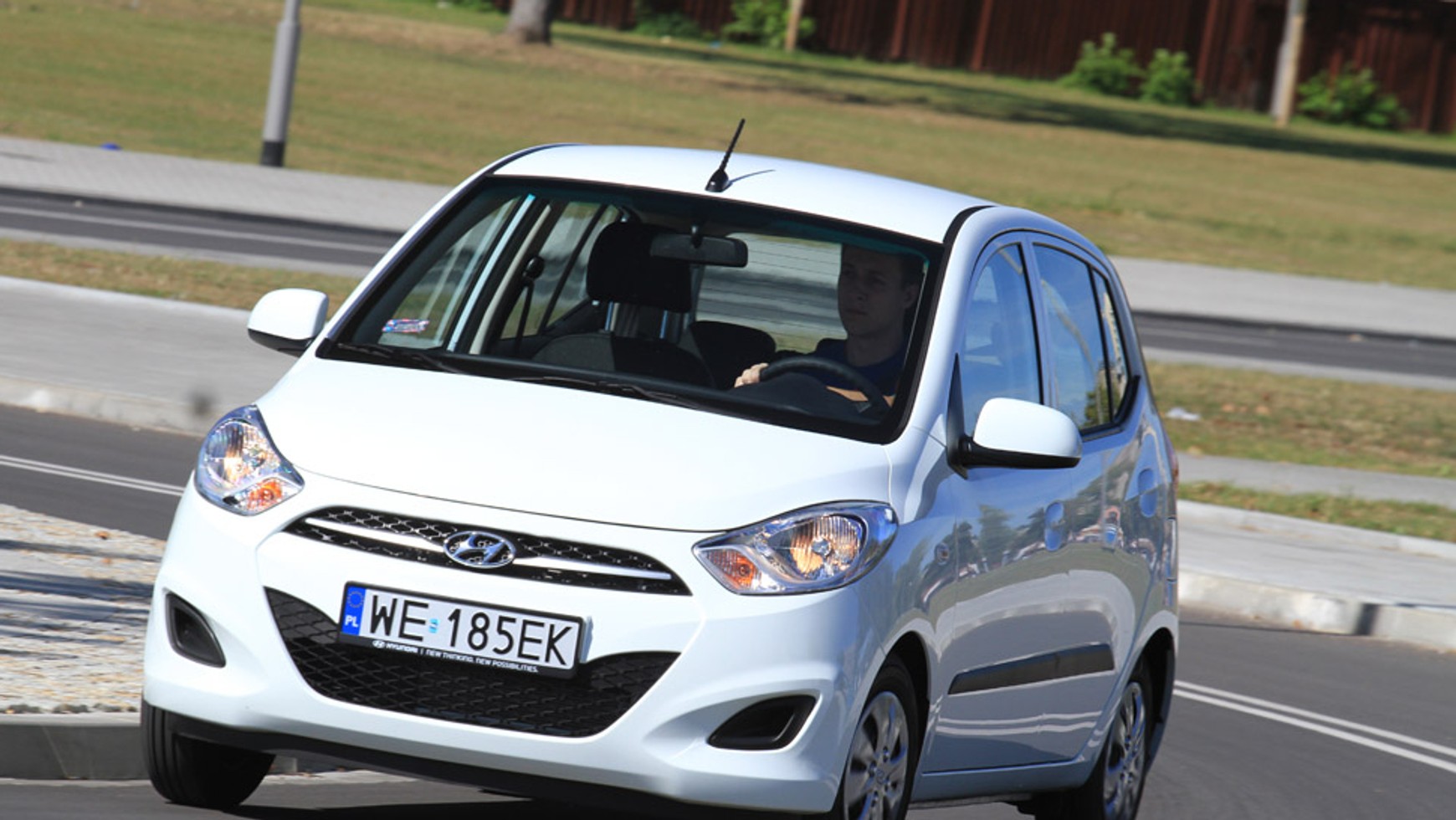 Mały Hyundai jest węższy i wyższy od niemieckiego rywala, co skutkuje gorszym prowadzeniem na zakrętach. Koreańczycy poradzili sobie z tym problemem, stosując sztywne zawieszenie. Dzięki niemu nadwozie i10 nie wychyla się zbytnio na zakrętach, ale do pewniejszego prowadzenia przydałby się precyzyjniejszy układ kierowniczy. Niestety, z powodu twardo zestrojonego podwozia i krótkiego rozstawu osi komfort w i10 jest na niskim poziomie.