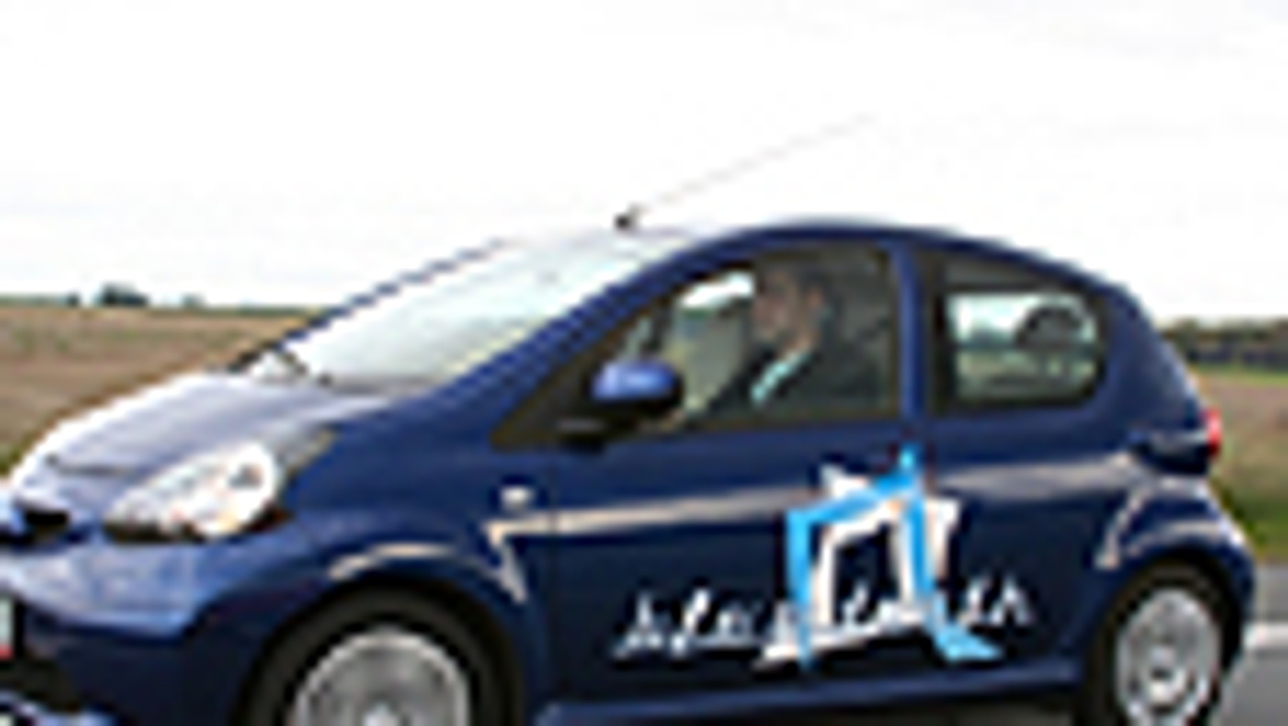 Dla auta ważącego 800 kg to porządny zastrzyk energii. Przełożenia pięciobiegowej skrzyni są tak dobrane, że na pierwszym biegu bez wysiłku dla silnika i uszu możemy jechać z prędkością 40 km/h. Na "dwójce" widok wskazówki prędkościomierza mijający 80 km/h nie należy wcale do rzadkości. Taka jazda nie jest efektem "ciężkiej nogi" kierowcy, tylko normalnej eksploatacji Aygo. Silnik z lekkością wkręca się na obroty, a w ich górnej partii czuje się najlepiej. Obiecywane przez producenta średnie spalanie 4,6 l/100 km jest możliwe do osiągnięcia, ale tylko przy delikatnej jeździe pozamiejskiej. Średnio w teście uzyskaliśmy 5,8 l/100 km, co i tak jest dobrym wynikiem. Testowy egzemplarz wyposażono w opcjonalny pakiet Blue, w skład którego wchodzą: zestaw Bluetooth, skórzana gałka dźwigni skrzyni biegów, beżowa tapicerka siedzeń, niebieskie elementy deski rozdzielczej i dywaników podłogowych. Malutkie urządzenie Bluetooth zamocowano na podsufitce. Jego obsługa jest prosta, i co najważniejsze - sprawdza się. Pakiet Blue zarezerwowany jest dla wersji 1.0 Luna A/C i nie wymaga dopłaty. Trzeba jedynie dokupić lakier Blue za 1300 zł.